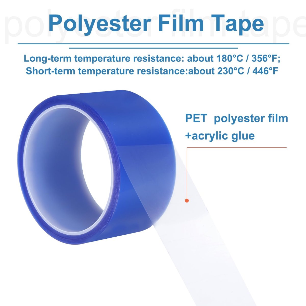 Heat-resistant tape polyester film tape. Adhesive made of acrylic acid, high viscosity, waterproof, not easy to corrode and age, single-sided self-adhesive design, no residue, easy to use, with excellent electrical insulation performance and high temperature resistance.. Color:Blue;Width: 50mm/2 Inch;Length: 33m/36 Yards;Thickness: about 0.06mm/0.002inch;Long-term temperature resistance: about 180C / 356F;Short-term temperature resistance:about 230C / 446F;Type: One-side self-adhesive design;Material: PET;Package Content:2 Rolls x PET Tape;. high temperature tape is very suitable for protecting electronic products and can be used for sensitive printed circuit board (PCB) components such as circuit board repair, welding, 3D printing, etc. Widely used as high temperature tape for transformers, motors, coils, capacitors and variable frequency power supplies in the electronics industry.. The surface of the tape is wear-resistant and pull-resistant, not easy to break and deform, and it is not easy to leave residual glue after tearing; therefore, it is also suitable for marking and positioning on workbenches, desktops, and floors.. Colored pet tape 5S desktop identification positioning tape is also suitable for ground area division, drawing board table application, park venue use, manual production use, shelf classification use, wall graphic DIY.Other fine products