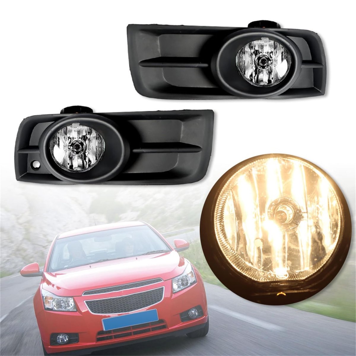 Replacement for - Replacement for 2009-2014 Cruze fog lights. Advantage - After upgrading the fog lights, your vehicle will exhibit a more unique and fashionable appearance, improving the overall quality of the vehicle. Function - Increase safety during heavy rain, heavy snow, dense fog and night driving. Brightness - These fog lamps are equipped chrome housing and clear lens, Allow you to see and be seen by oncoming drivers even through a thick fog.Other fine products