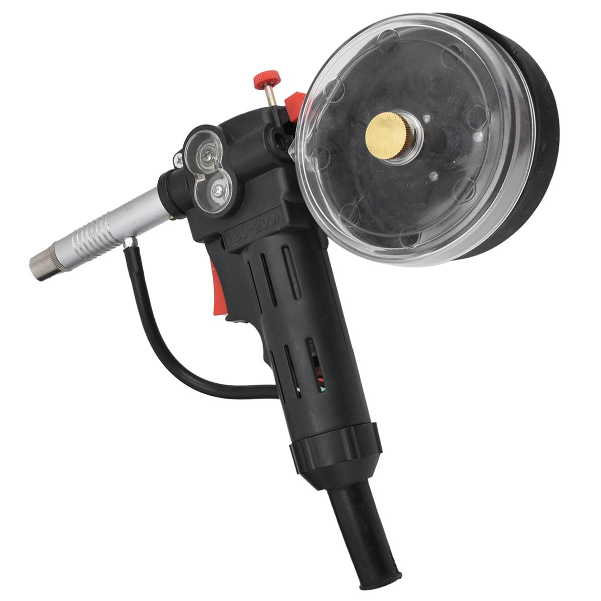 Convenient The enclosed reel case offers a user-friendly way to adjust the reel hub tension internally, allowing for easy without hassle. This feature ensures a smooth and efficient welding experience for users looking for convenience in their welding equipment.. Clear Visibility: The see-through design of the welding wire feeder ensures that the steel wire remains clean and from or debris, while also providing users with a clear view of the steel wire supply. This feature is for those who require a high level of visibility and cleanliness in their welding process, ensuring optimal performance at all times.. Versatile Use: With a wide range of applications including aluminum alloy manufacturing, trailer repairs, sign making, automotive and ship maintenance, as well as use in high-altitude environments, this welding wire feeder is a versatile tool that can be used for various purposes. Users can rely on its flexibility and adaptability for different projects and tasks.. Performance: With a 200A rating under a 60% duty cycle, this welding wire feeder delivers consistent and performance for CO2 and mixed gas welding applications. Users can trust in its parameters to deliver the power and efficiency needed for successful welding projects, ensuring quality results every time.. Construction: Crafted from premium ABS material, this welding wire feeder is built to last with strong durability for long-term use. Additionally, its air-cooled design provides efficient cooling to prevent overheating during extended use, making it a and option for users seeking quality and longevity in their welding equipment..Other fine products