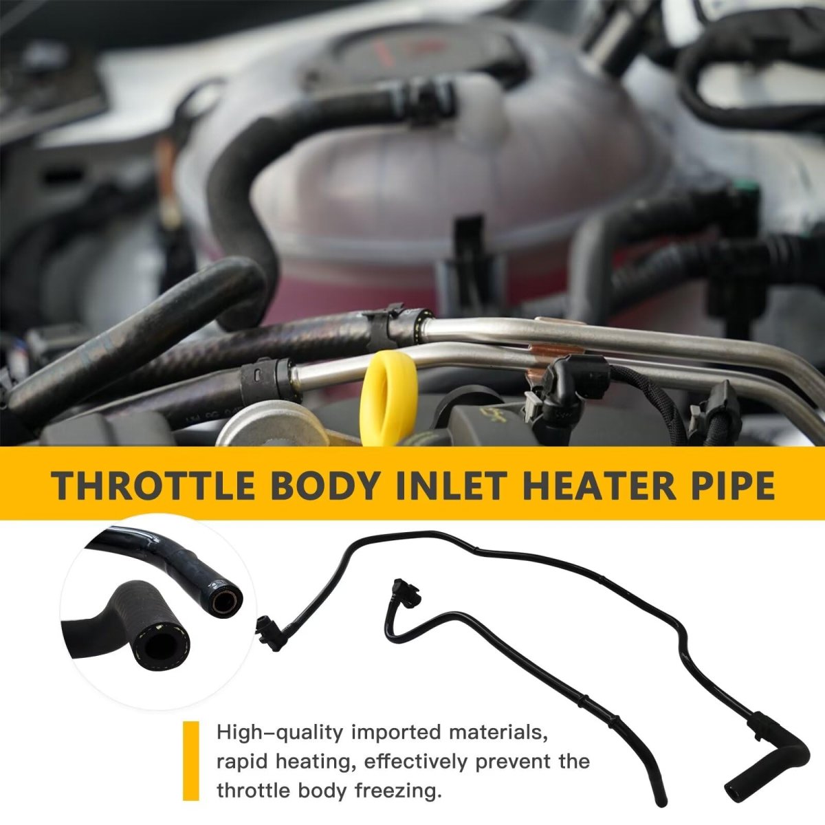 Compatible: for Chevy Cruze 2011 2012 2013 2014 2015; Replacement for 2016 Chevy Cruze Limited; Replacement for Chevy Sonic 2012 2013 2014 2015 2016 2017 2018.. Replaces Part Number: 25192905, 55354563, 5826487, 5826481, 55569809, 55579102.. Material: The throttle body heater pipes are made of rubber material for durability and better sealing, meeting the original specifications and features.. Feature: The inlet and outlet pipes of the throttle body heater can be directly connected to the thermostat and throttle valve to prevent Cooling leakage.. Package Included: 1* inlet heater pipe hose + 1* Outlet Heater Pipe.Other fine products