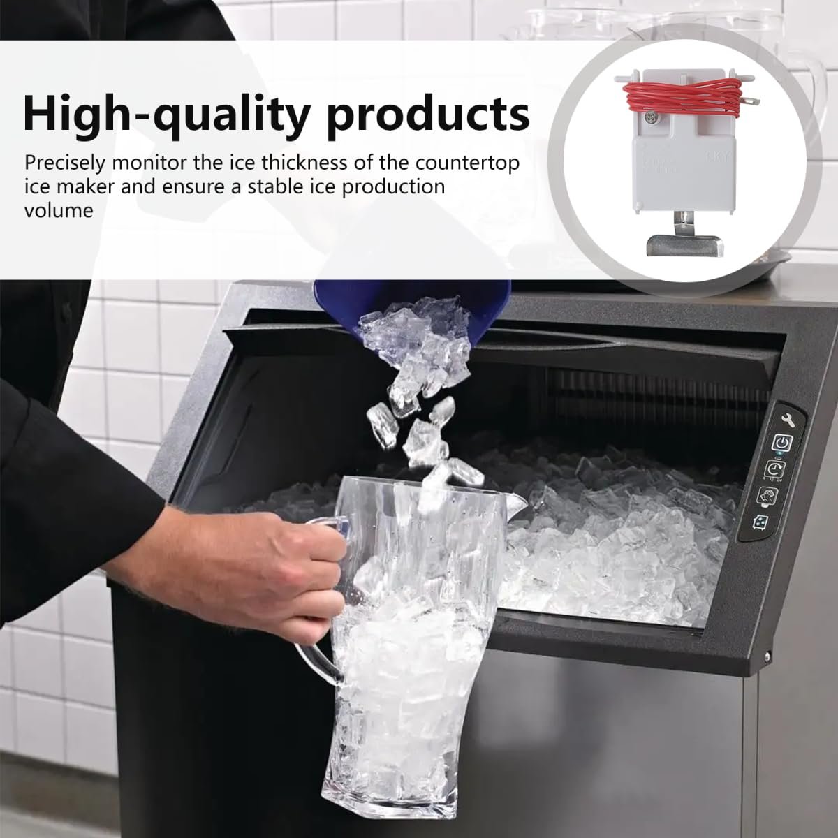 Compatibility - Designed for Manitowoc B Series, J Series, and Q Series ice makers, providing precise ice thickness control. Direct Part Replacement - Replaces part numbers 7627813 and 76-2781-3. Dual Voltage Working Works with both 115V and 208-230V machines, covering most commercial ice maker installations. Reliable Ice Production - Ensures consistent ice thickness and quality by accurately detecting ice formation levels in the machine. Package Includes - 1 x Ice Thickness Control Probe.Other fine products