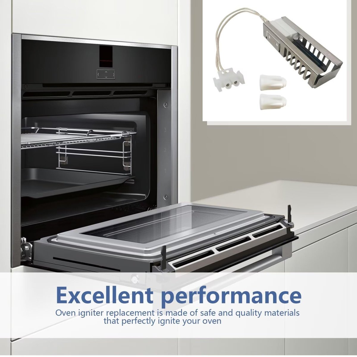 The gas oven igniter for Sam-sung replaces the DG94-00520A, 2692271, AP5577941, EAP4241428, PS4241428. Compatible Models: Our gas stove igniter for Sam-sung Whirlpool NX583G0VBBBAA, FX710BGS/XAA, NX58F5500SS/AA, NX585H5600SS/AA, NX58J7750SS/AA, NX58 J7750SS/AC, NX58H9950WS/AA, FX710BG S/XAC, NX58 F5300SS/AA and FX510BGS/XAA compatible. Function: The DG94-00520A oven igniter for Sam-sung will help repair ovens that generate heat due to the igniter burning out. If your oven cannot be heated or heating is abnormal, you need to replace the old oven igniter to extend its service life and maintain the efficiency of the oven. Quality: The wWB13K21 gas oven igniter is made of high-quality silicon carbide materials, which is tested by multiple processes. This gas range igniter fit for ge can helps the lighter temperature quickly reach 2000-2800F in 1 minute, and successfully solve problems such as oven won't heat properly, the oven runs improperly, faulty igniter, and the oven not lighting up. Package includes 1 x DG94-00520A Gas Range IgniterReplacement.Other fine products