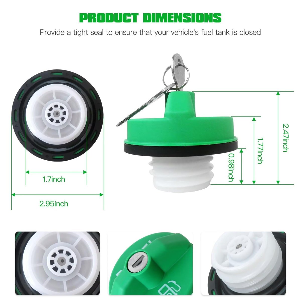 Item Name: Vicue 10591D Locking Fuel Gas Cap, Diesel Fuel Tank Cap for 3500 2007 Chevrolet Silverado, Replace 9MGC791, MGC791, 31778D. Manufacturer Part Number: 10591D Interchange Part Number: 9MGC791, MGC791, 31778D, 40791, 35039D, 40591, 10591. High-Quality: Our Fuel Tank Cap Is Crafted From Sturdy Materials, Adhering To OE Specifications For An Exact Fit. It Provides An Optimal Seal For Your Vehicle's Fuel Tank, Enhancing The Overall Functionality And Efficiency Of Your Fuel System By Preventing Evaporation And Leakage. Easy to Install: The fuel tank cap is simple and convenient to install, you can complete the installation by yourself, no need to go to the repair shop, saving time and effort. Package includes: 1 * Locking Fuel/Gas Cap, 2 * keys.Other fine products