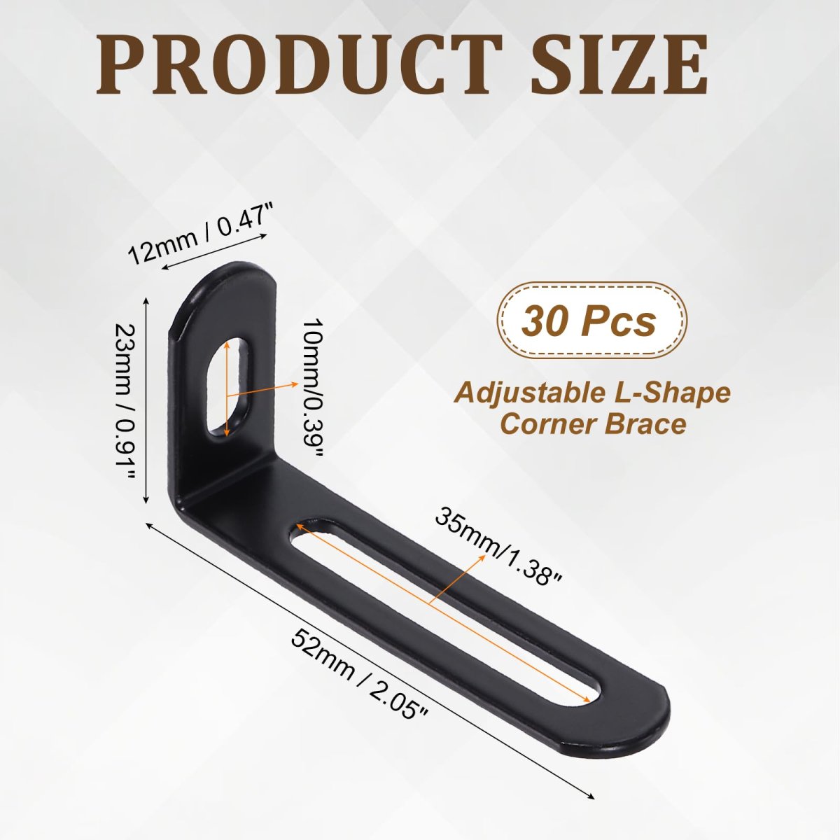 Durable Material: The L-shaped corner brackets are made of iron with a spray paint surface, featuring corrosion resistance, moisture resistance, rust prevention, high strength, durability, stability, and a longer service life. Right Angle Design: The corner protector shelf support is a right-angle L-shaped design. This structure is more conducive to any right-angle corner for stable support, forming a reliable connection, and effectively fixing shelves and other furniture. Easy to Use: The shelf bracket comes with adjustable mounting slots and screw holes, which can be adjusted to a certain extent to solve installation problems and move as needed. Just use a drill to dig a hole in the wall or wooden board, then install our bracket, and then tighten the screws on the bracket with a screwdriver to easily fix it. Wide Application: Our corner brackets are excellent fixing and connecting accessories, suitable for reinforcing the corners of chests, drawers, wooden tables, chairs, beds, desks, cabinets, dressers, wardrobes, TV wall mounts, and other structures.Other fine products