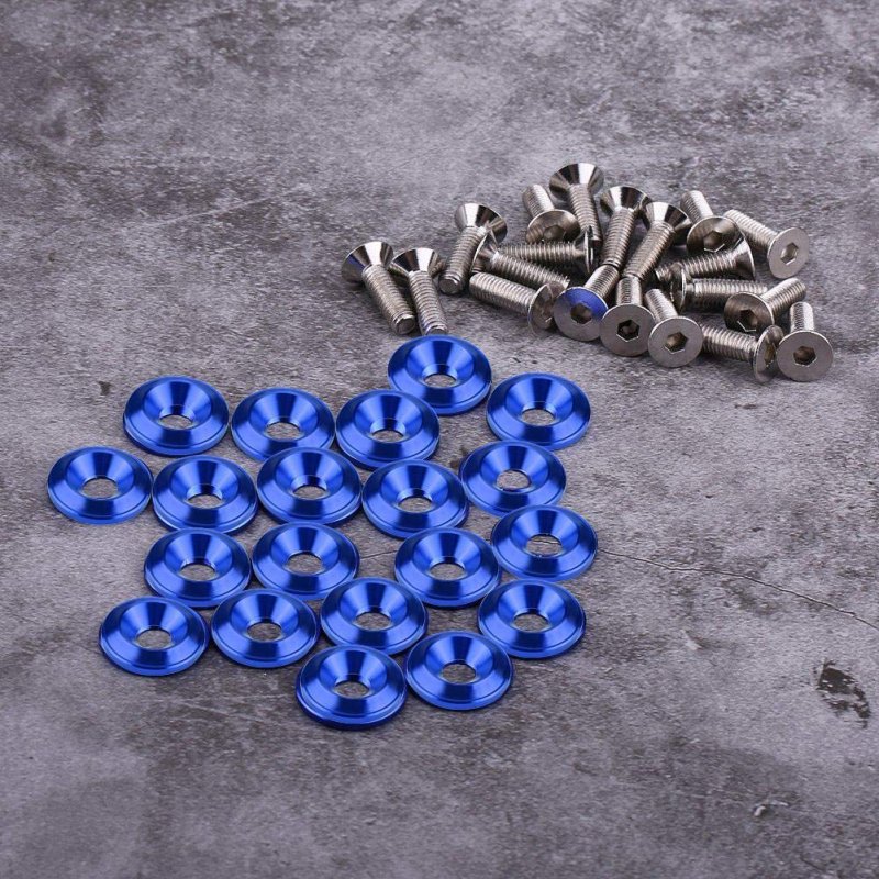 - 20pcs Aluminum Washers Bolts Universal Vehicle Bumper Fender Washer Bolt Engine Bay Dress Up Kit Blue