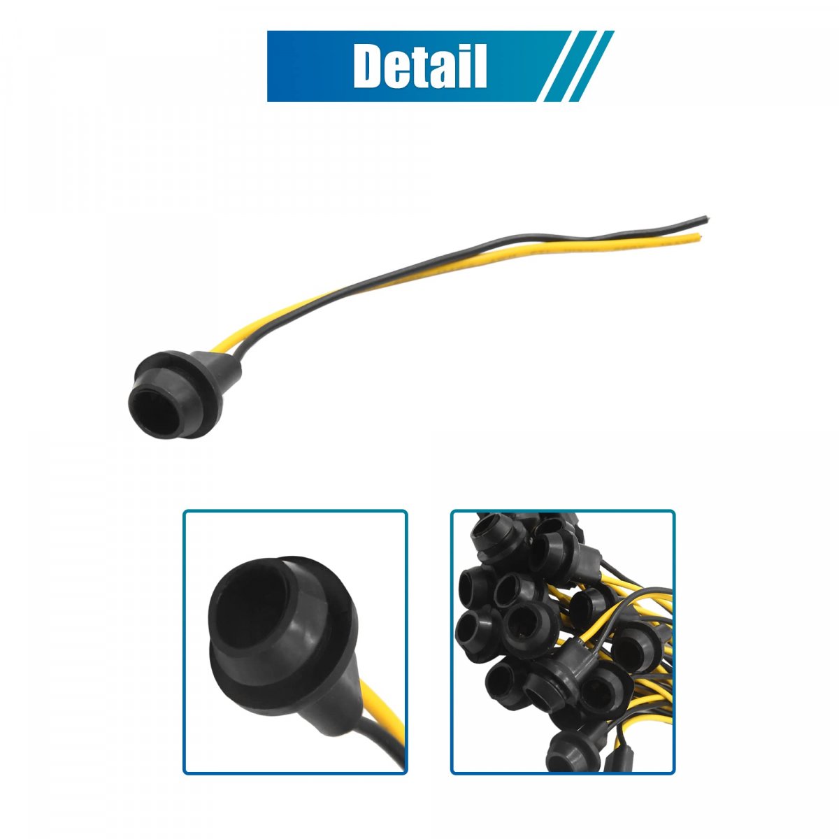 [Specifications] Socket Type: T10; Wire Length: 12.5cm / 4.92"; Size: 22 x 19mm / 0.87" x 0.75" (H*Max.D). [Function] It can be used on standard T10 bulb housing for an extension. Lamp Socket provides a connection for light bulb contacts to operate the bulb and offer good abrasions and moisture. Fits on a universal bulb socket for maximum power output.. [Material] Light Socket is made of durable rubber, which has stable characteristics, steady electrical performance, and good reliability for long time use.. [Plug and Play] Easy installation and use, just plug and play. Just pry out the old Light Socket and plug with these new sockets into your turn signal, brake, daytime running assembly.. [Package Include] 20 x T10 Light Socket.