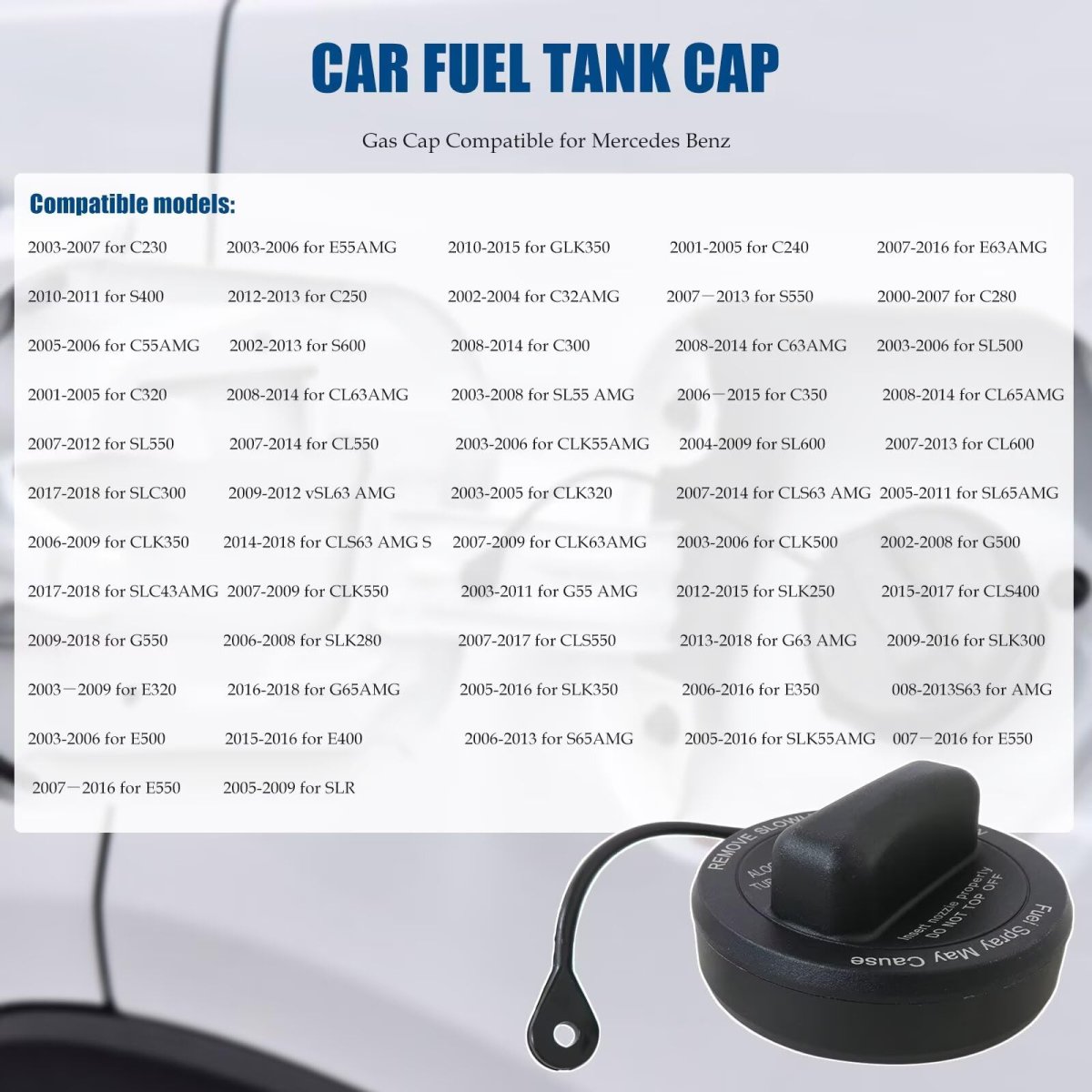 Xspeedonline 2214700605 Gas Cap, Fuel Cap for Mercedes Benz 2007-2016 E63 AMG, 2017-2018 SLC43 AMG. Fitment: for Mercedes Benz vehicles including for C-Class, E-Class, S-Class, CL, CLK, CLS, G, GLK, SL, SLC, and SLK models using part number 2214700605.. Direct Replacement - Engineered to match factory specifications for straightforward installation without modifications to your vehicle's fuel system.. Maintains Fuel System Integrity - Creates a proper seal to help prevent fuel evaporation and maintain correct tank pressure for optimal vehicle performance.. - Made of material for reliable service.Other fine products