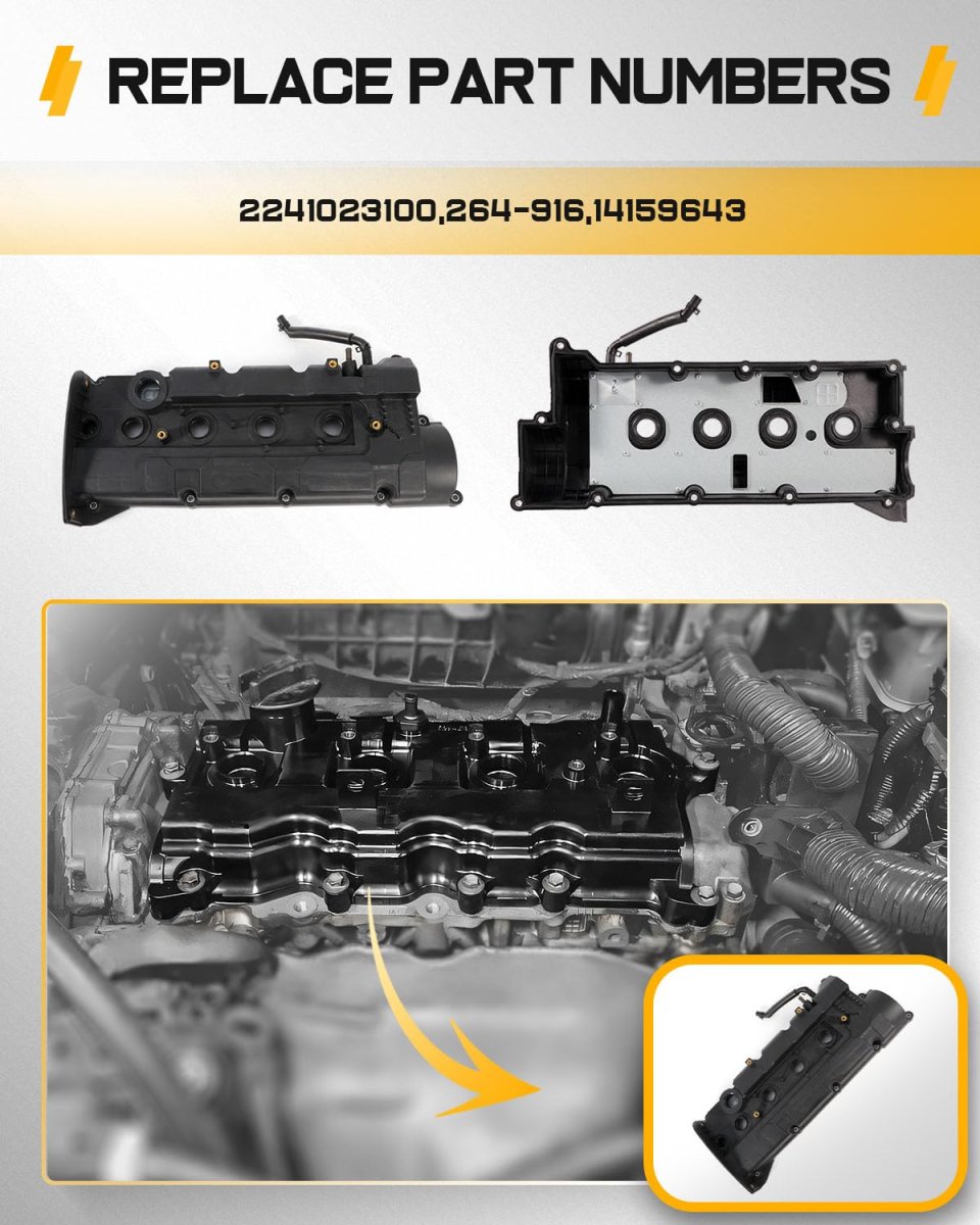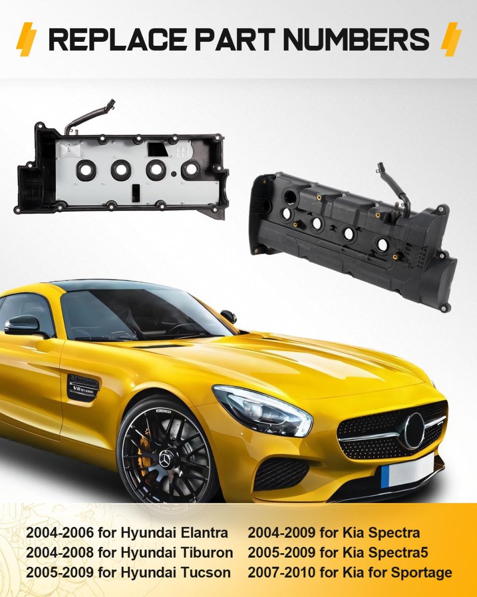 Compatible With :2004-2006 for Hyundai Elantra 2.0L,2004-2008 for Hyundai Tiburon 2.0L,2005-2009 for Hyundai Tucson 2.0L,2004-2009 for Kia Spectra 2.0L,. Valve Cover Assembly Including: NEW Valve Cover , NEW Valve Cover Gasket,NEW Valve Cover Bolts. Material-Function:Valve covers made of premium quality plastic, steel, or aluminum construction resists warping, cracking, and porousness. Provides a tight, lasting seal against oil leaks. Performance: OCPTY valve cover kit effectively seals the gasket set so that oil leaks will be prevented each time. Moreover, it can help prevents other harmful materials enter the valve train and damages the gasket structure.Other fine products