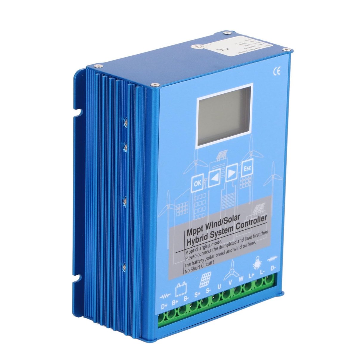 APPLICATION AREAS: controller 24/48V auto match for 1000w wind generator and 1000w solar panels for wind generators and solar panels, for wind solar complementary systems for homes, boats and street lights.. APPLICATION AREAS: controller 24/48V auto match for 1000w wind generator and 1000w solar panels for wind generators and solar panels, for wind solar complementary systems for homes, boats and street lights.. APPLICATION AREAS: controller 24/48V auto match for 1000w wind generator and 1000w solar panels for wind generators and solar panels, for wind solar complementary systems for homes, boats and street lights.. MPPT TECHNOLOGY AND PWM TECHNOLOGY: The wind generator charging part adopts pressurized MPPT technology for continuous and efficient charging even at low wind speed. Solar panel charging adopts MOS tube series PWM technology. Stepless unloading function, including external unloading load resistor.. SET AUTOMATICALLY: This controller matches all 24 or 48V batteries, including lithium batteries. Parameters are set automatically when the battery type is selected. Users can also adjust them to suit their needs. Smarter and can control charging voltage stability..