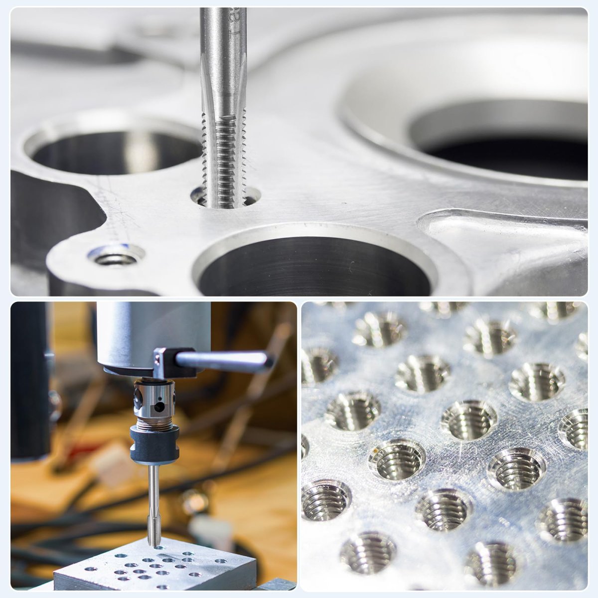 Thread Tap Size: AS thread size: 8-32 UNC (right hand); thread length: 20mm / 0.79"; total length: 58mm / 2.28"; square shank width: 4mm / 0.16"; accuracy: 2B. Straight Flute Tap: The tapping tool adopts straight flute design, clear threads, and right hand cutting direction. Threading tap provides rapid downward chip removal to achieve efficient thread cutting, suitable for processing through holes or shallow holes.. Wide Applications: Screw thread tap can create new threads or re-thread damaged or jammed threads. Widely used for most metals, iron plate, copper, zinc, alloy steel, abrasive steel, A3 steel, stainless steel, etc.. Add proper tapping oil for higher quality internal threads and more durable taps.. Durable Material & Finish: M2 (6542) high-speed steel taps offer high hardness, good toughness, wear resistance, and excellent cutting performance.. Tips: Machine tap is used with drill presses, tapping/CNC/milling machines. NOT recommended for hand and electric drill tapping. The higher the hardness, the slower the speed. Drill the holes with a twist drill bit first, then tap with a thread tap. The tapping angle should be 90 degrees vertical and stable..Other fine products