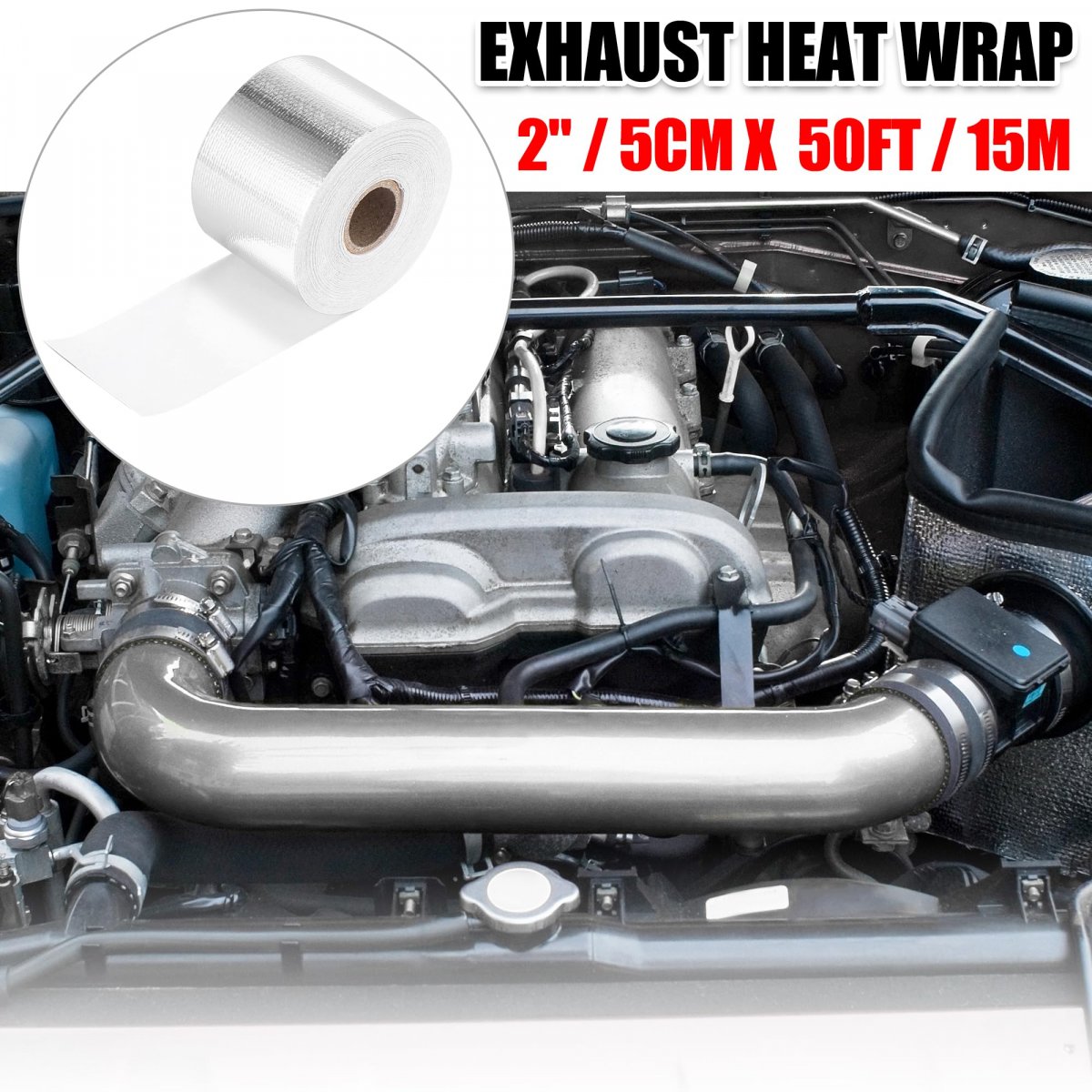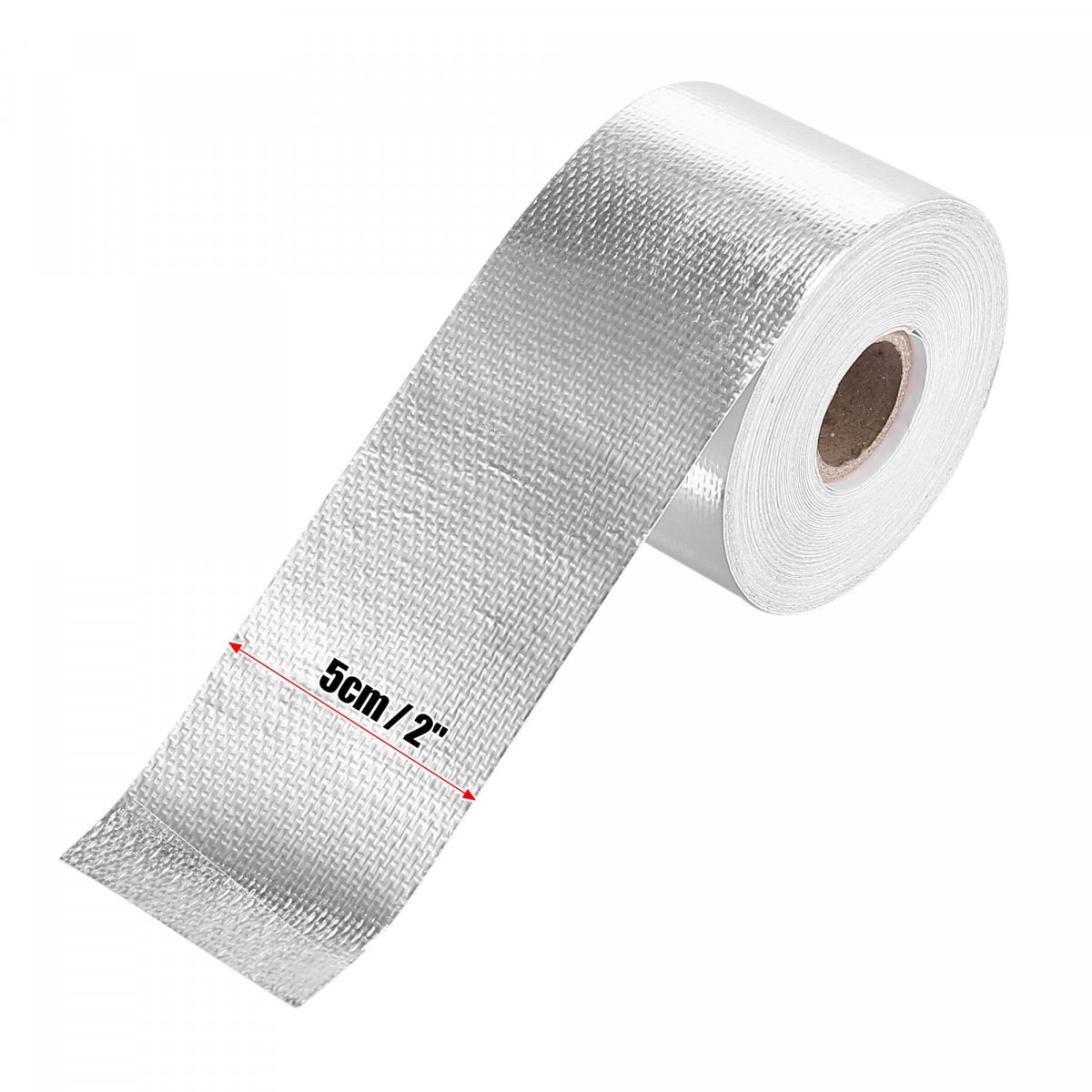Size: The tape length is 15m /50ft and the tape width is 5cm / 2".. Function: This tape can provide protection from heat, its reflective surface can still screen off the heat and provide protection, effectively protect parts and components.. Application: This self-adhesive heat resistant tape can easily use to clean surfaces in automotive parts; they are typical applied in hoods, and other places that you want to control radiant heat for added heat protection.. Material: The adhesive heat shield tape is made of fiberglass, which is wear resistance, heat insulation, high temperature resistant, corrosion resistant and waterproof, and strong adhesion.. Easy to use: The adhesive backed foil tape is self-adhesive, easy to apply and remove and flexible with almost no gaps, so you can adjust the length according to your needs..Other fine products