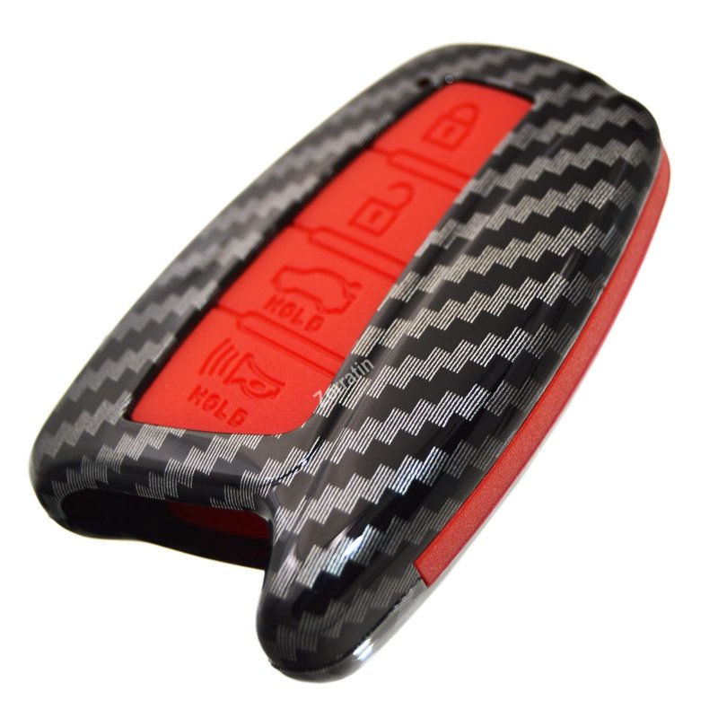 - 2-layers Hybrid Combo Carbon Key Fob Cover W Keychain For Hyundai Azera Equus Santa Fe