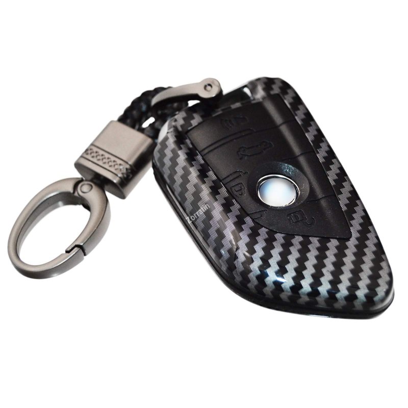 - 2-layers Protection Hybrid Combo Carbon Key Fob Cover With Keychain For Bmw 3 5 6 7 Series X3 X5 X6 M