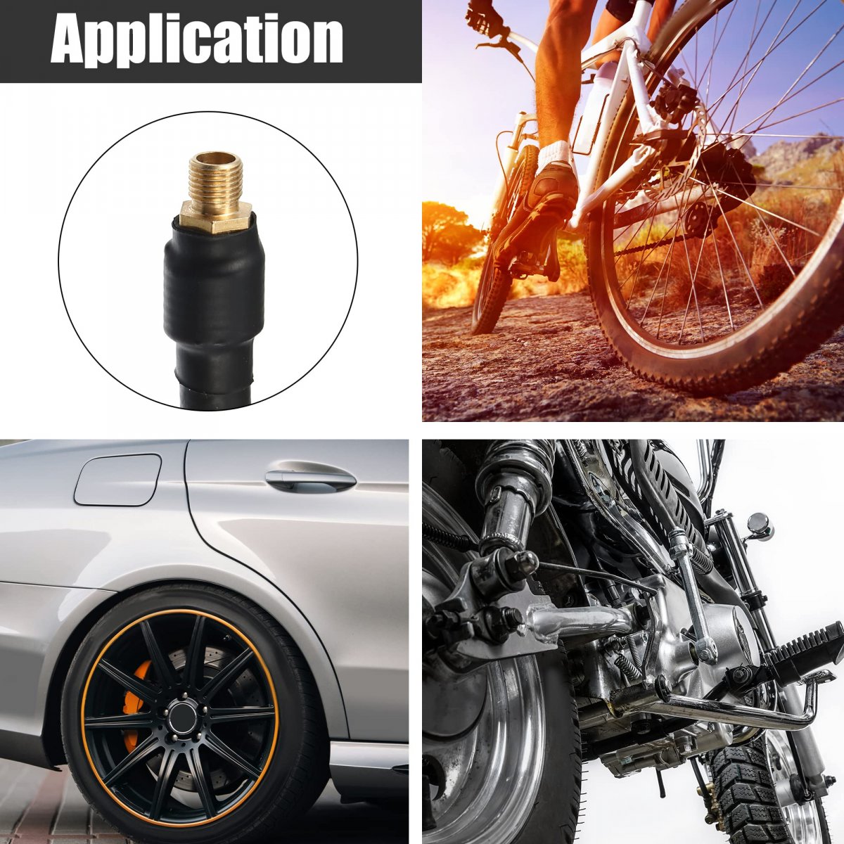 Tire inflator chuck adapter can suitable for many tires, it can connect to your tire quickly for speedy inflation, suitable for bike, motorcycle, car air fill.. Nice tight seal lock on tire chuck, corrosion-resistant, wear resistance, good performance, durable and flexible. durable and not easily damaged.. No additional tool is required, directly connect the tire. Open flow thumb press tire chuck, easy and quick hands-free inflation.. Using Step: Screw adapter end onto original inflator hose, press to clamp adapter head onto tire valve, start the inflator for a quickly and none leaking inflation.. Package Included: 1 x 2m Tire Inflator Hose Adapter.Other fine products