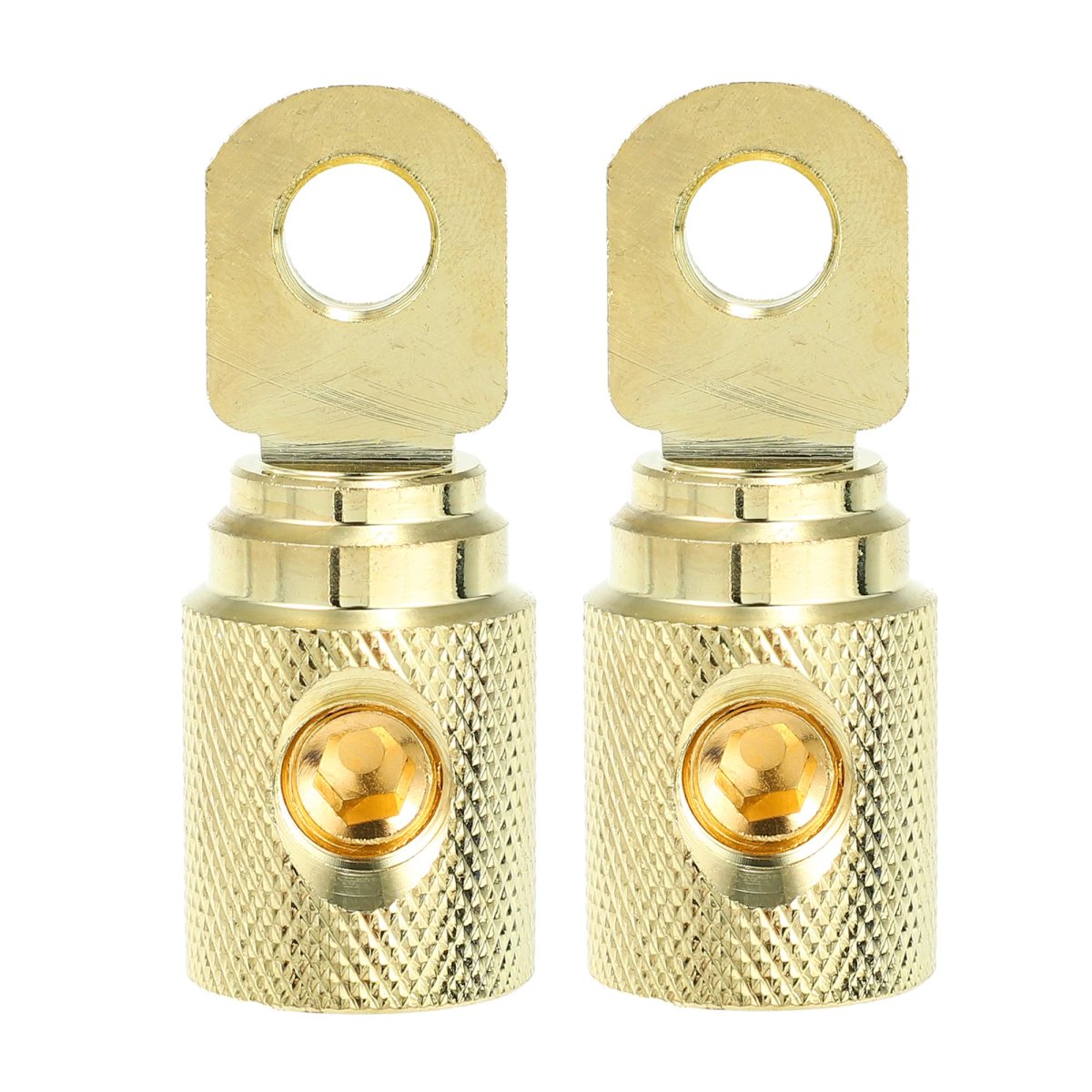 - 2pcs Amp Input Reducer Copper 0 Gauge Car Stereo Audio Awg Pin Power Ground Wire Gold Tone