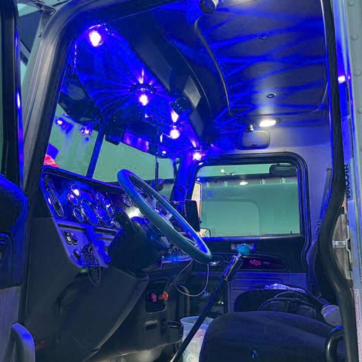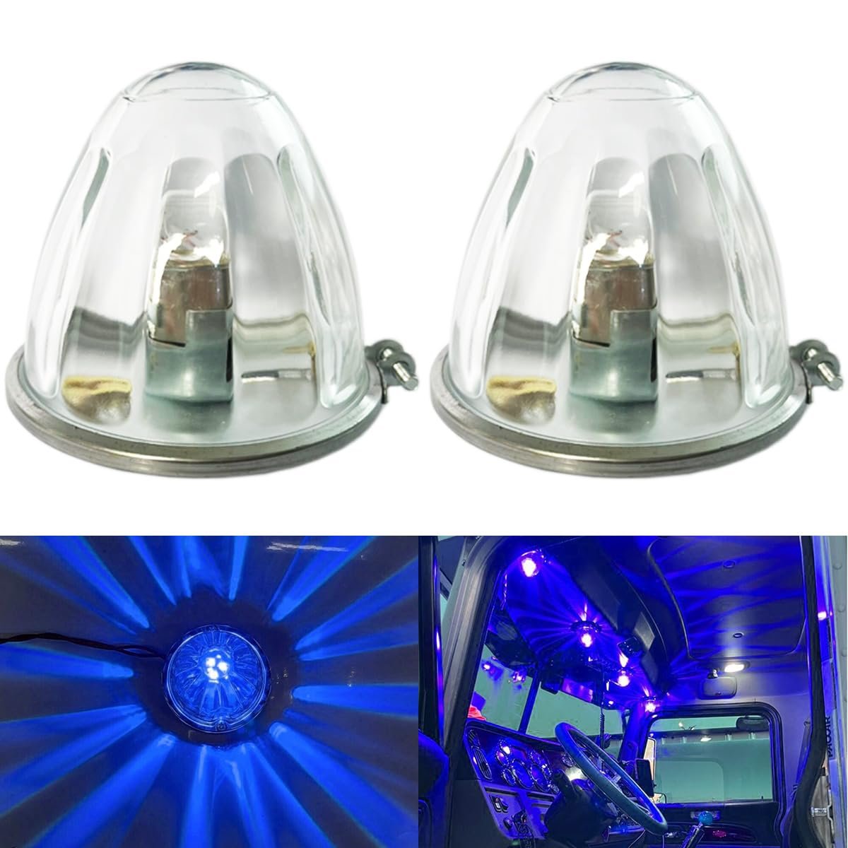 - 2pcs Blue Led Clear Glass Lens Side Marker Turn Signal Watermelon Lights With Stainless Steel Bezel For Kenworth Peterbilt