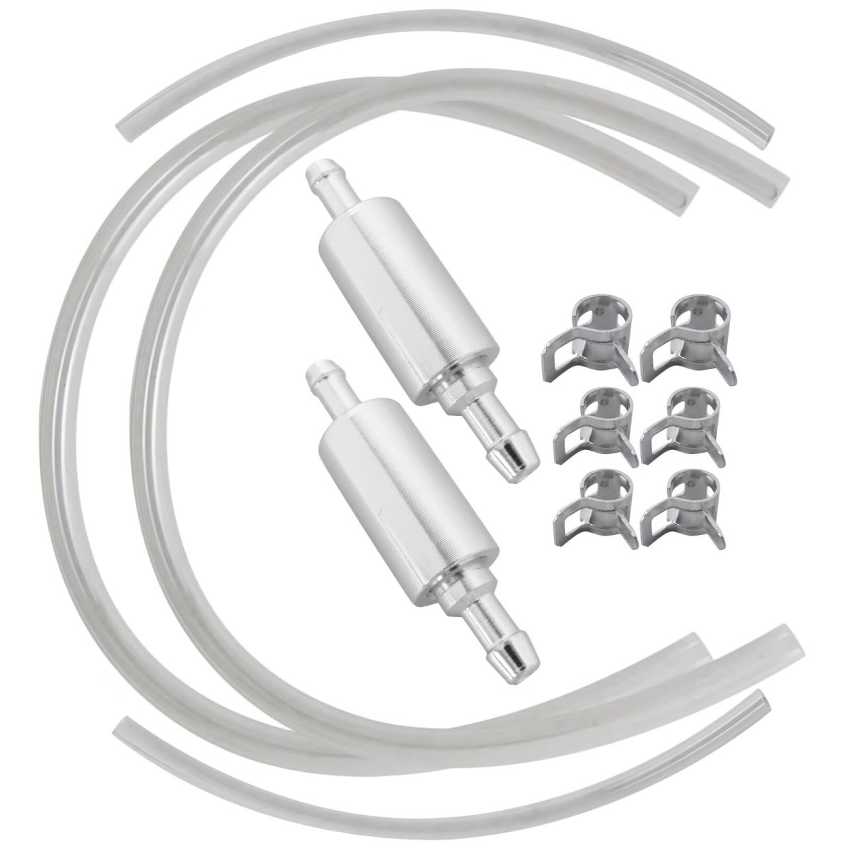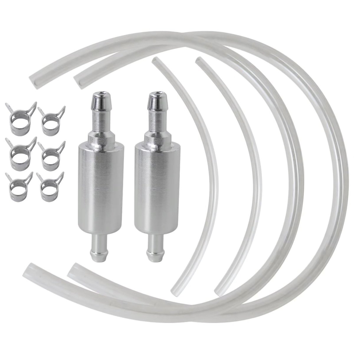 2PCS Brake Bleeder Hose with Check Valve - Motorcycle Car Hydraulic Bleeding Kit by USonline911. Effective One-Person Brake Bleeding - Designed to work with DOT 4 and other common brake fluids, enabling efficient hydraulic system bleeding by a single person while helping to minimize fluid waste.. One-Way Check Valve Design - Integrated check valve allows brake fluid to flow in one direction only, working to prevent air from re-entering the brake or clutch system during the bleeding process.. Aluminum and Flexible Tube Construction - Combines aluminum end fittings with a transparent flexible tube that maintains clarity for bubble monitoring while withstanding exposure to brake fluids.. Secure Metal Clip Connection - Features metal clips that attach firmly to brake bleeder nipples, helping to create a stable connection during the bleeding procedure..Other fine products