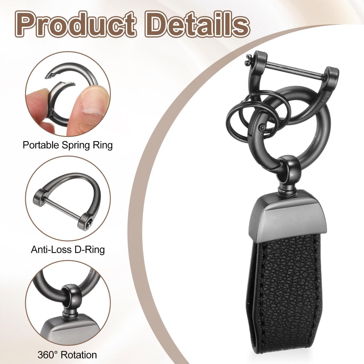 • 2pcs Car Key Chain Zinc Alloy Leatherchain Anti-lost D-ring Key Fob 360 Degree Rotatable Decorative With Screwdriver For Men