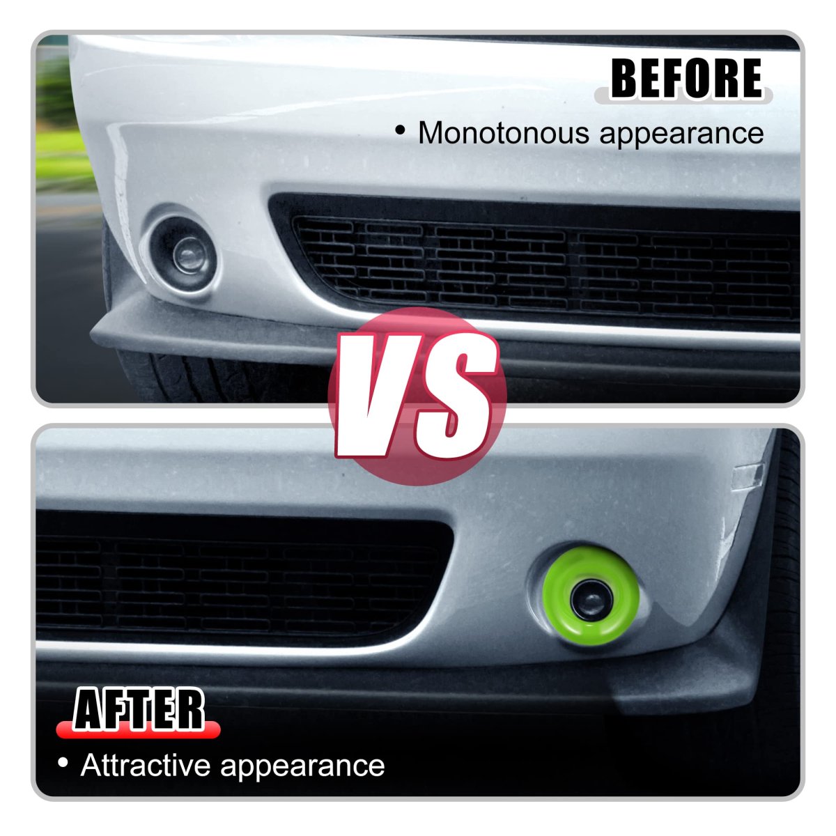 Fitment: for Dodge Challenger 2015 2016 2017 2018 2019 2020. Size: 11x10x5.5cm / 4.33"x3.94"x2.17"(L*W*H). Material: Made of good ABS Plastic, durable, and has a long service time.. Easy to Install: With double sided tape on the back of the trim, is a simple and convenient installation.. Function: It can cover existing scratches and prevent your car from scratch and abrasion. Bright colors make your car more stylish and beautiful.. Package Includes: 2 x Front Foglights Covers Trim.Other fine products