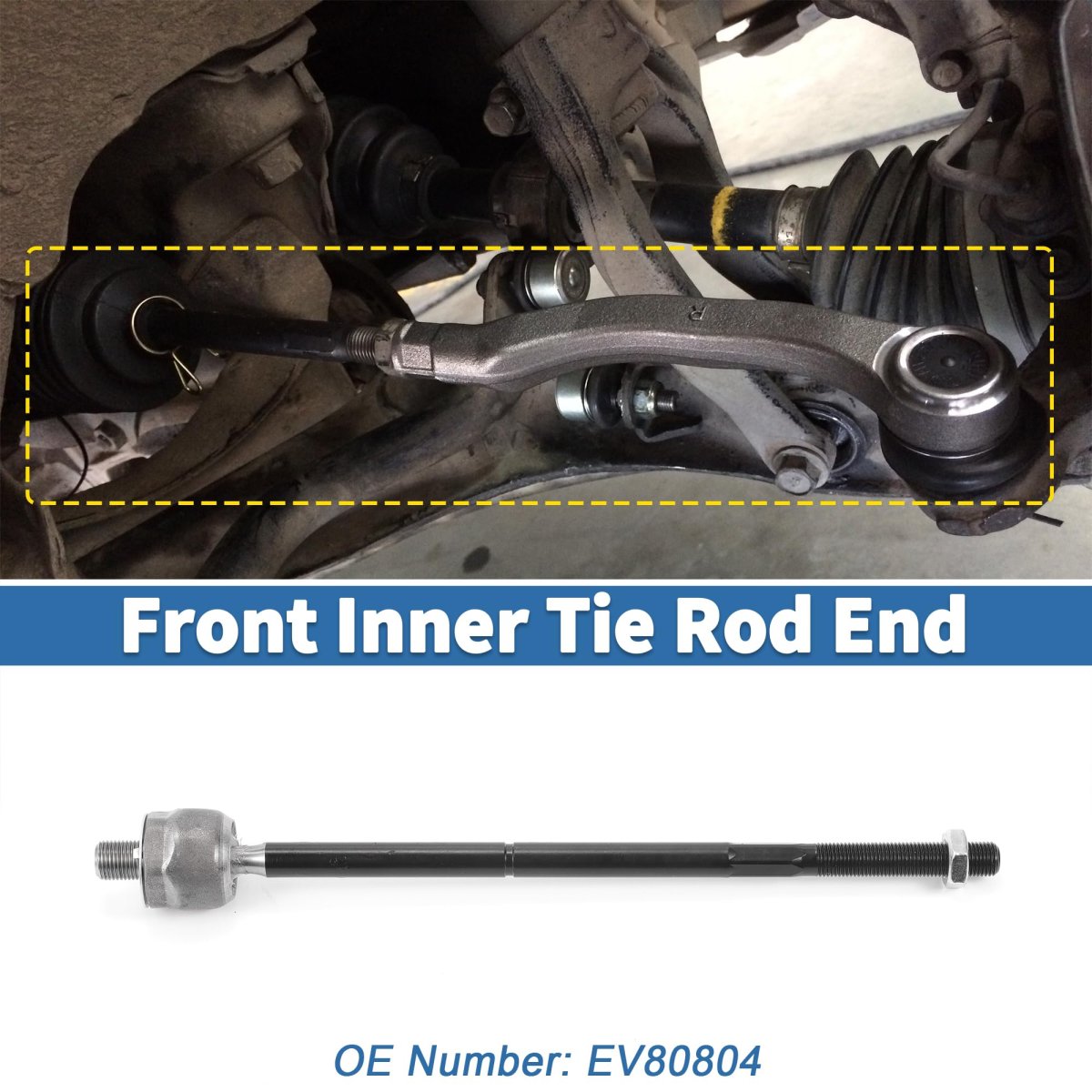 FITMENT: The Tie Rod End Links Kit is fit for Ford for Mustang 2005-2010. OE Number:EV80804; PLACEMENT ON VEHICLE: Front, Inner, Left, Right. FUNCTION: Steering Tie Rod is used to cushion the impact transmitted from the uneven road surface to the frame or the body, and to reduce the vibration generated to ensure the smooth running of the vehicle.. PACKAGE INCLUDES: 2 x Front Inner Tie Rod Ends Links. INSTALLATION: Manual not included, you can loosen the pinch nut and remove the cotter pin, remove the castle nut and the outer tie rod end, then remove the boot and remove the inner tie rod end. At last, replace a new tie rod and install it back according to the method of disassembly..Other fine products