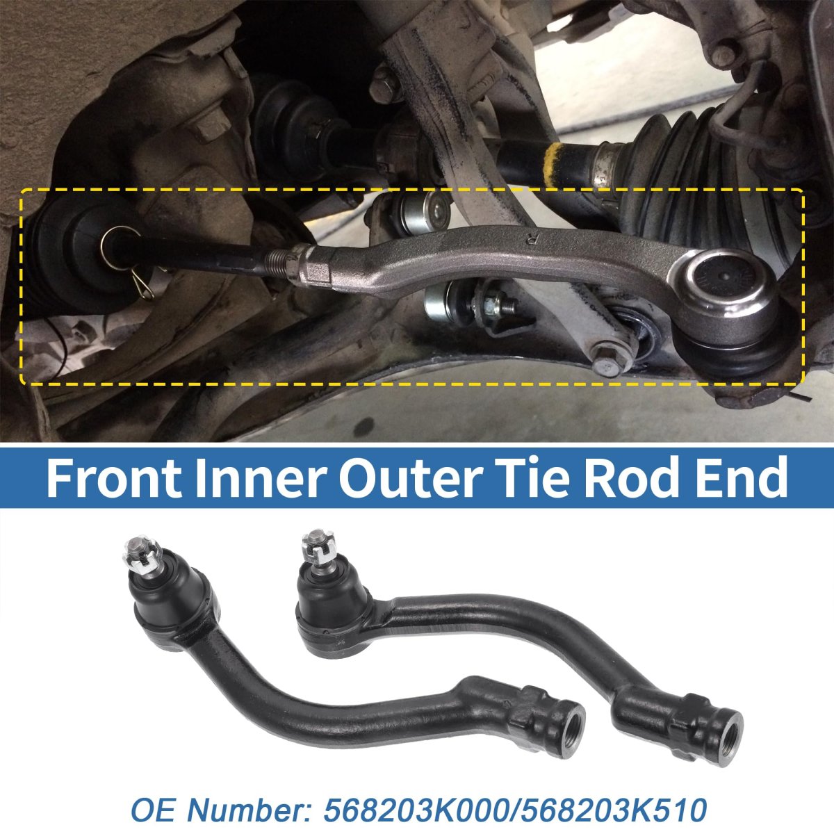 FITMENT: The Tie Rod End Links Kit is fit for Hyundai Azera 2008-2011, for Hyundai Sonata 2009-2010. OE Number:568203K000/568203K510; PLACEMENT ON VEHICLE: Front, Outer, Left, Right. FUNCTION: Steering Tie Rod is used to cushion the impact transmitted from the uneven road surface to the frame or the body, and to reduce the vibration generated to ensure the smooth running of the vehicle.. PACKAGE INCLUDES: 2 x Front Outer Tie Rod Ends Links. INSTALLATION: Manual not included, you can loosen the pinch nut and remove the cotter pin, remove the castle nut and the outer tie rod end, then remove the boot and remove the outer tie rod end. At last, replace a new tie rod and install it back according to the method of disassembly..Other fine products
