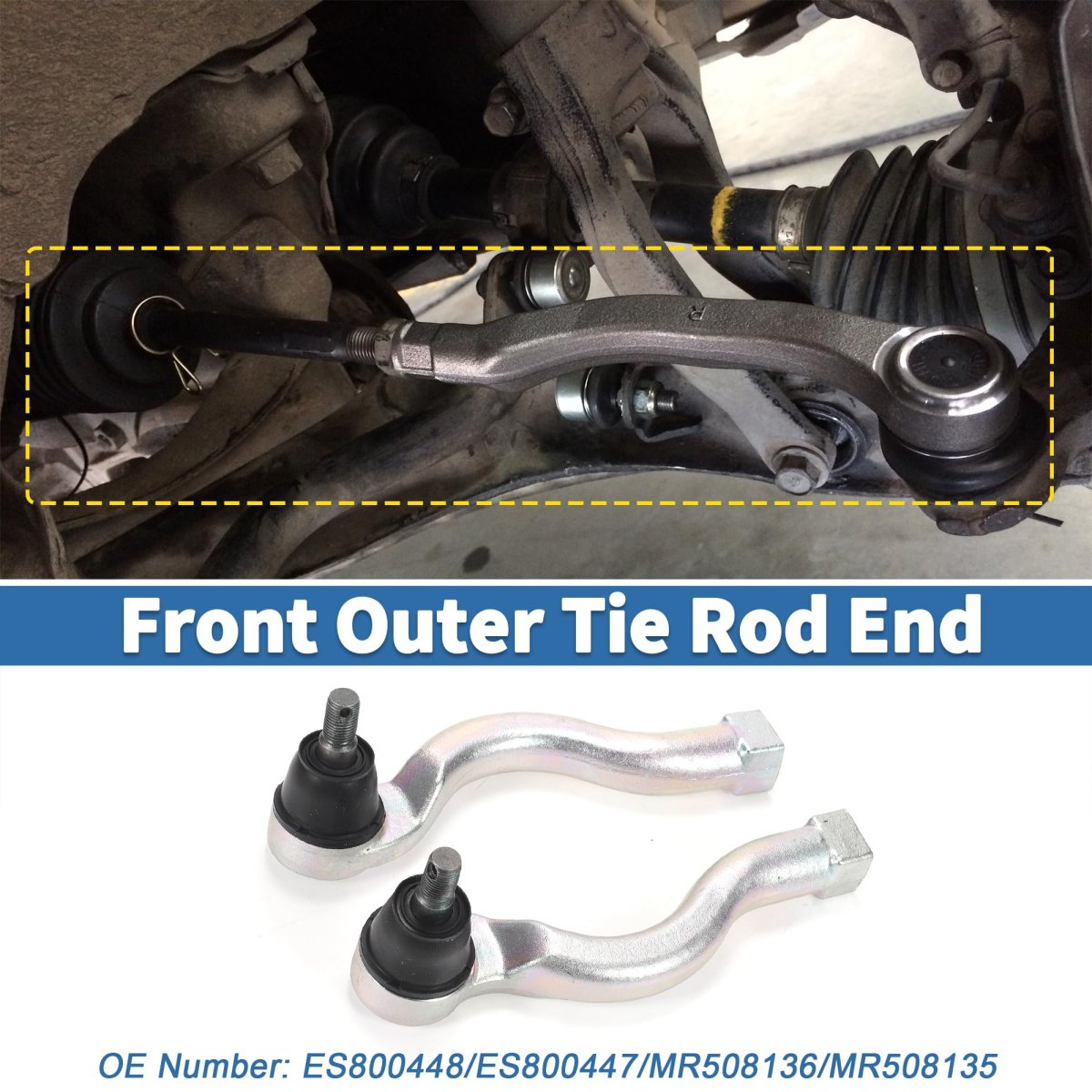 FITMENT: The Tie Rod End Links Kit is fit for Mitsubishi Montero 2001-2006. OE Number:ES800448/ES800447/MR508136/MR508135; PLACEMENT ON VEHICLE: Front, Outer, Left, Right. FUNCTION: Steering Tie Rod is used to cushion the impact transmitted from the uneven road surface to the frame or the body, and to reduce the vibration generated to ensure the smooth running of the vehicle.. PACKAGE INCLUDES: 2 x Front Outer Tie Rod Ends Links. INSTALLATION: Manual not included, you can loosen the pinch nut and remove the cotter pin, remove the castle nut and the outer tie rod end, then remove the boot and remove the outer tie rod end. At last, replace a new tie rod and install it back according to the method of disassembly..Other fine products