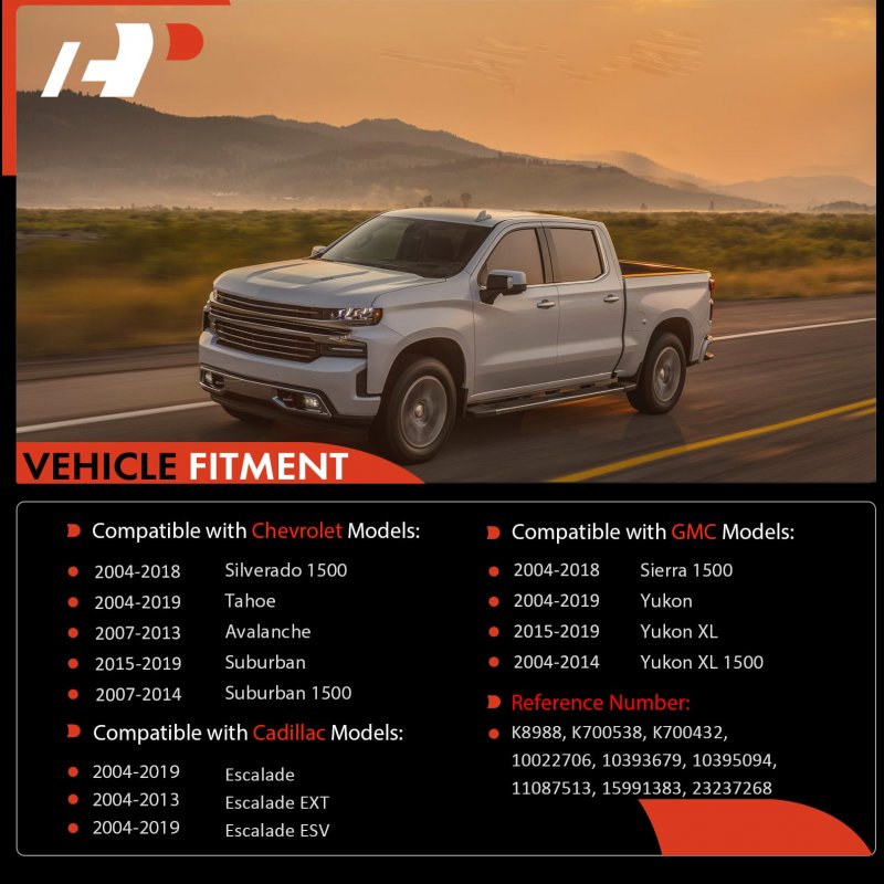 [Vehicle Fitment]: Compatible with Chevrolet Avalanche 2007-2013 Silverado 1500 2007-2007 (Fit LT & WT Model) Silverado 1500 2008-2016 Suburban 2015-2019 Suburban 1500 2007-2014 Tahoe 2007-2016 Fit for Cadillac Escalade 2007-2016 Escalade ESV 2007-2016 Escalade EXT 2007-2013 Fit for GMC Sierra 1500 2007-2007 (Fit SLE & WT Model) Sierra 1500 2008-2016 Yukon 2007-2016 Yukon XL 2015-2016 Yukon XL 1500 2007-2014 . [Special Design]: We use high-end technology to make sway bar end links and add good grease to ensure its excellent performance, which not only enhances the product's pressure resistance and durability, but also effectively reduces friction and noise. In addition, this are made with durable steel rods and rubber dust boots that add extra protection against dust, dirt or water ingress in any undesirable road conditions..Other fine products