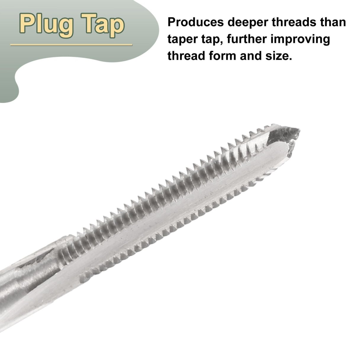 Hand Threading Tap Size: Thread size: #4-48 UNF; total length: 50mm / 1.97"; thread length: 25mm / 0.98"; square end width: 3mm / 0.12"; accuracy class: 2B. Right hand thread cutting, fast tapping with accuracy.. Plug Style Tap: Plug tap produces deeper threads than taper taps and is used after the first tap to further improve thread form and size. The straight groove design of the hand tap can quickly remove chips downward, reduce operating resistance, and achieve efficient processing. The thread is clear and burr-free, which can achieve precise tapping.. Wide Applications: Hand taps are mainly used with tap wrenches and are suitable for re-tapping damaged or stuck threads, or to create new threads. The threading tools are used for tapping through or shallow holes in mild steels, aluminum, iron, copper, hard plastic.. M2 (6542) High Speed Steel: It has high hardness, good wear resistance, is not easy to deform, heat-resistant and has a long service life. It is characterized by only a matrix without any coating, and is suitable for general thread tapping.. Tips: Add appropriate tapping oil for higher quality internal threads and more durable screw taps. Ensure proper alignment, use proper tapping technique, and apply consistent pressure as you turn the tap to achieve clean, precise threads. Periodically reverse while tapping to break up chips and remove debris from the flutes.