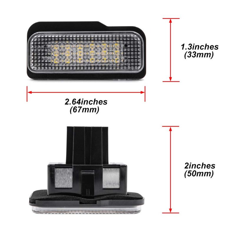 FITMENTCompatible With 20032009 Benz W211 4D, 20032009 W211 5D , 20012007 W203 5D , 20042010 W219 4D , 20042011 R171 2D, 2012-2020 Tesla Model S . OEM Patr # 2038200256 / A2038200256 / A2118200756. FEATURES: Powered by 18-SMD super bright xenon white LED diode with CAN-bus error free, brighter than OEM at least 3 times, give your car a modern and luxurious appearance with enhanced safety at night. -- 18pcs high power 3014 SMD For Each LED license plate light lamp.Lifespan is more than 50,000 hrs ;Solid-state, high-shock and vibration-resistant. EASY INSTALLATION: Easy and security to install directly,No hassle plug-and-play installation,Just unplug the old incandescent light bulb and insert the new automotive LED Light bulb, fits right into original light housings.Other fine products