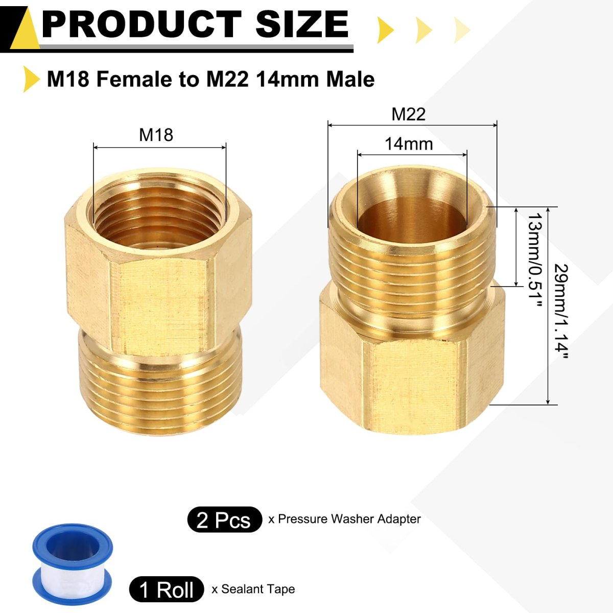 - 2pcs Pressure Washer Adapter M18 Female To M22 14mm Male Quick Connect Fittings Brass Swivel With Sealant Tape For Power