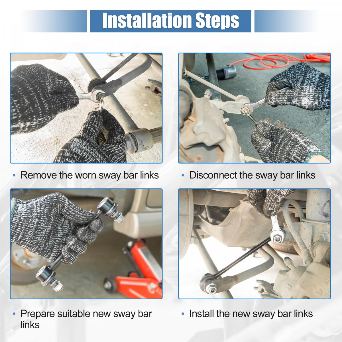 1. FITMENT: The Stabilizer Bar End Links fit for Ford Escape 2009-2012, for Mazda Tribute 2009-2011, for Mercury Monterey 2004, for Mercury Mariner 2009-2011, for Mazda Tribute 2009-2011. 2. OE NUMBER: K750571, 9L8Z5K484A, 9L8Z5K484B, ZZD128171; [PLACEMENT ON VEHICLE]: Rear, Left, Right; [PACKAGE INCLUDES]: 2 x Rear Stabilizer Sway Bar Links.. 3. FUNCTION: This sway bar link can fix the clunking noise when going over small bumps, prevent excessive leaning during turns and improve the car's stability. And the ball ends provide smooth operation throughout the entire range of driving.. 4. WHEN TO REPLACE: Signs your suspension system needs replacement include clunking noises during turns and bumps, loose or misaligned steering wheel, poor handling, uneven tire wear, and visible damage in the suspension system.. 5. INSTALLATION: Manual is not included, first, remove the upper and lower bolt, then disconnect the sway bar links from the sway bar and the control arm. At last, install the new and suitable sway bar links..Other fine products
