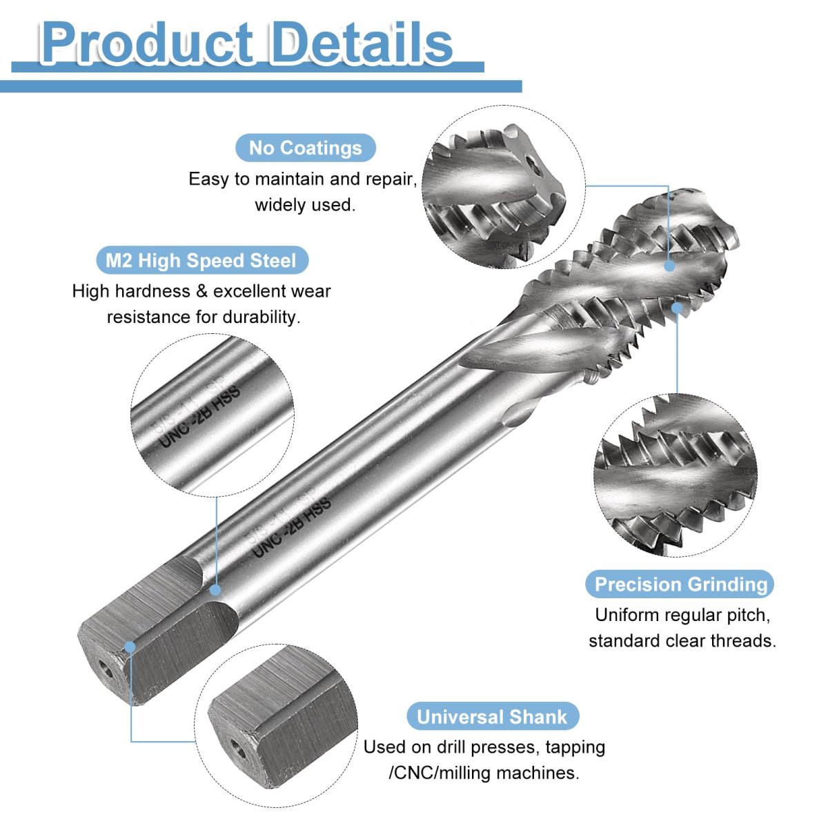 - 2pcs Spiral Flute Thread Taps 5 8-11 Unc 2b Machine Threading Tap Bit Uncoated Screw Tapping Repair Tool M2 High-speed Steel