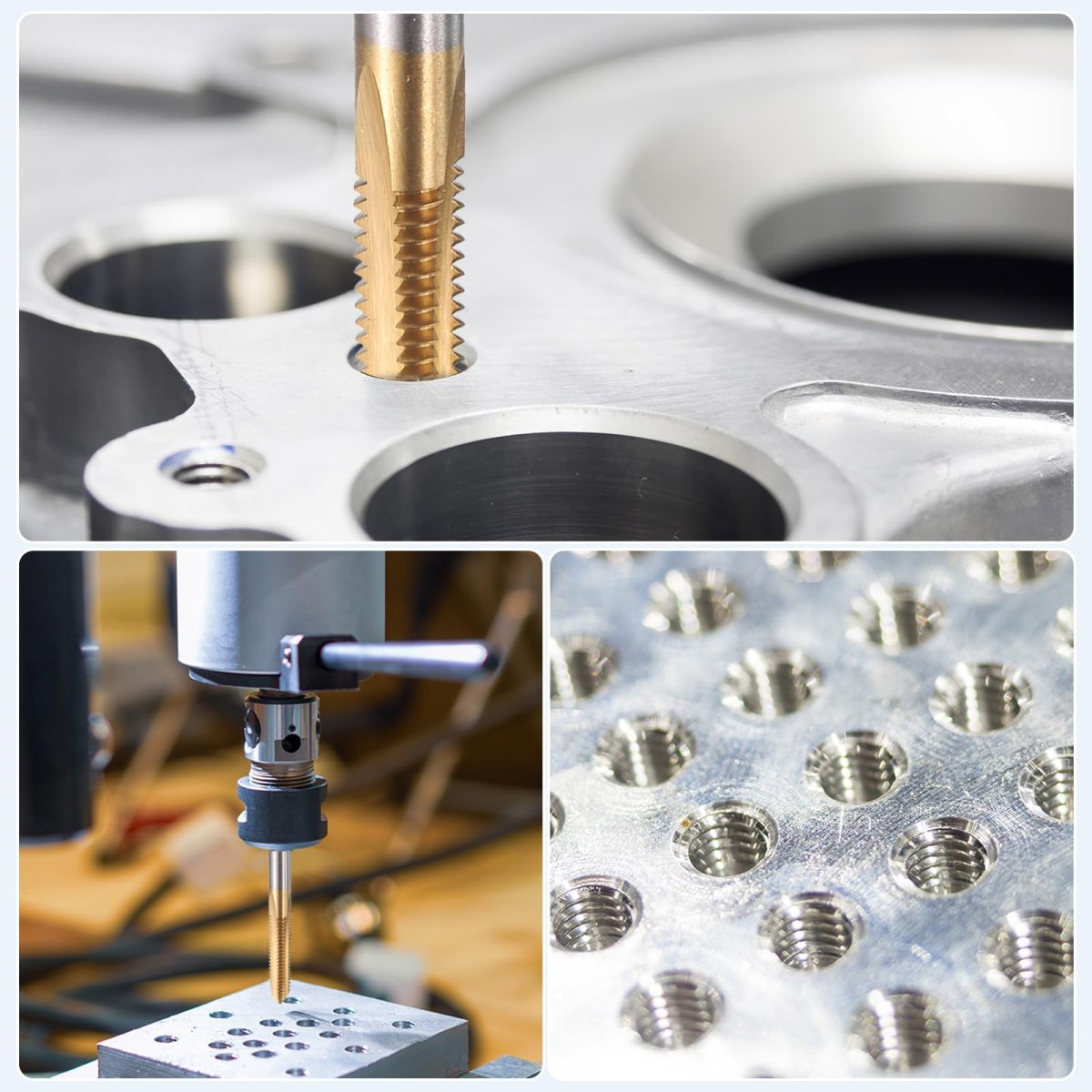 Thread Tap Size: Metric thread size: M1.6 x 0.35 (right hand); thread length: 9mm / 0.35"; total length: 44mm / 1.73"; square shank width: 2mm / 0.08"; accuracy: H2. Straight Flute Tap: The tapping tool adopts straight flute design, clear threads, and right hand cutting direction. Threading tap provides rapid downward chip removal to achieve efficient thread cutting, suitable for processing through holes or shallow holes.. Wide Applications: Screw thread tap can create new threads or re-thread damaged or jammed threads. Widely used for most metals, iron plate, copper, zinc, alloy steel, abrasive steel, A3 steel, stainless steel, etc.. Add proper tapping oil for higher quality internal threads and more durable taps.. Material & Finish: 6542 (M2) high speed steel tap offers high hardness and excellent wear resistance for durability and longevity, and good cutting performance for clean, precise holes. Titanium coating offers enhanced hardness, corrosion and rust resistance, heat resistance, and reduced friction for smoother tapping.. Tips: Machine tap is used with drill presses, tapping/CNC/milling machines. NOT recommended for hand and electric drill tapping. The higher the hardness, the slower the speed. Drill the holes with a twist drill bit first, then tap with a thread tap. The tapping angle should be 90 degrees vertical and stable..Other fine products