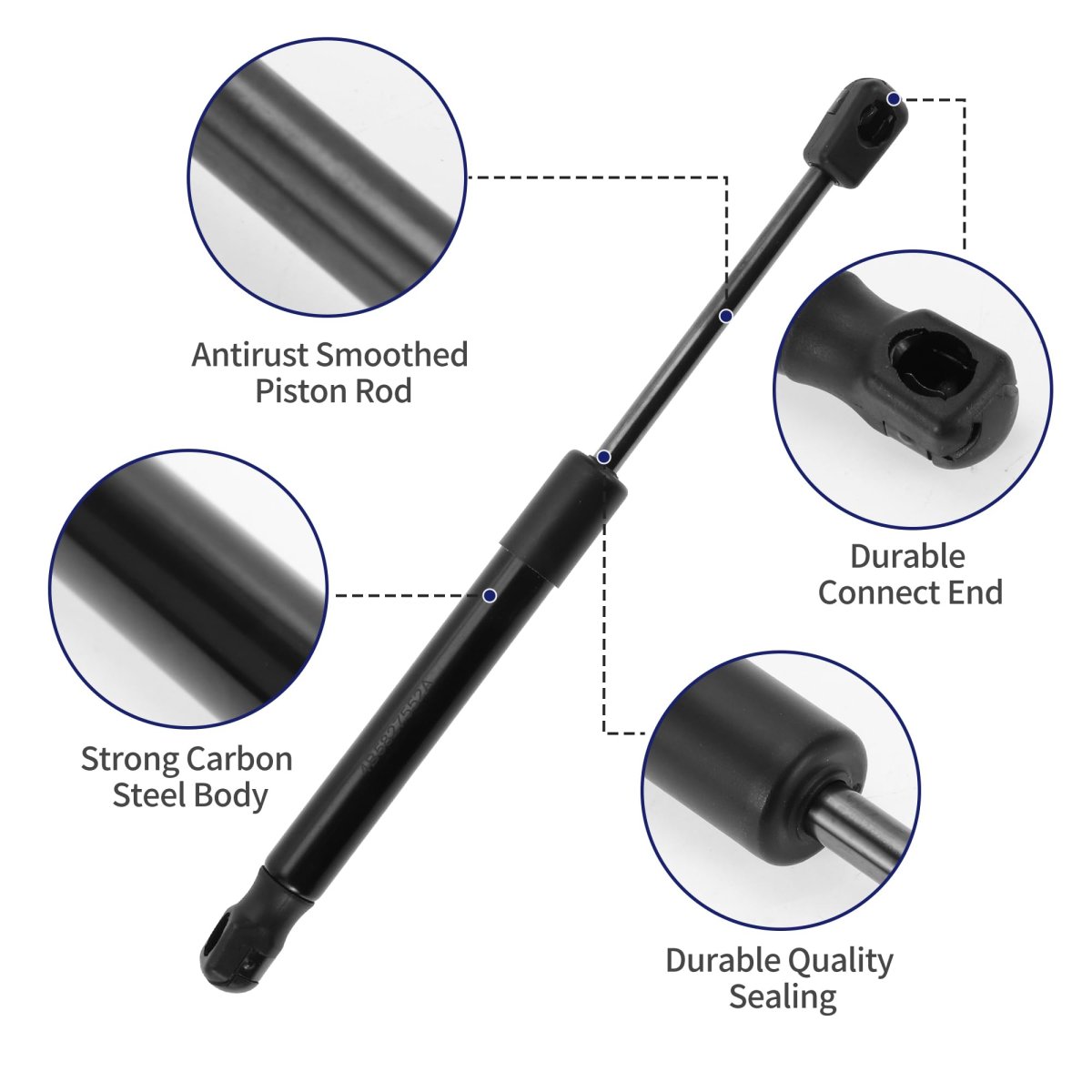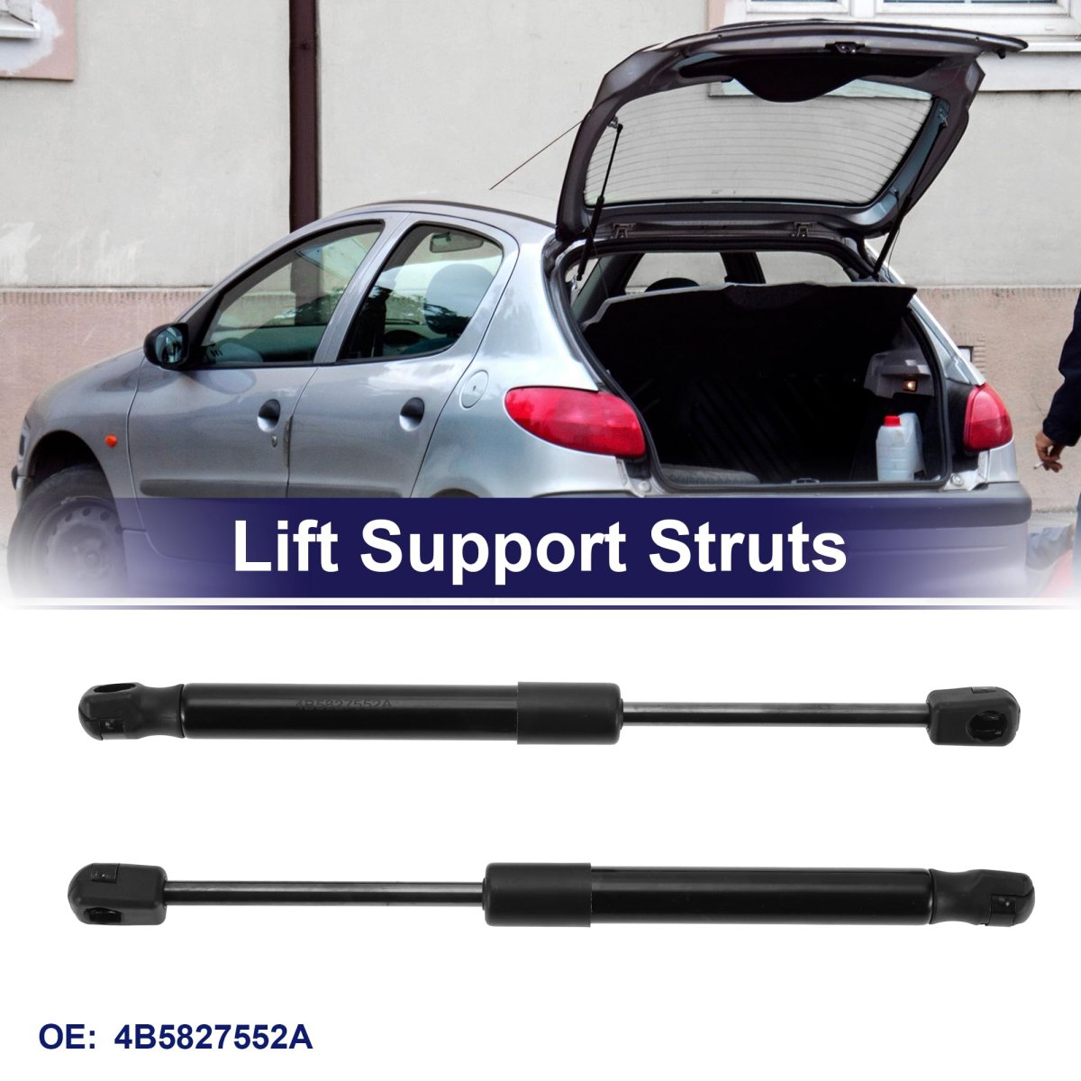 Fitment:for Audi A6 Sedan 2003-2004. OE Number:4B5827552A. Specification:Extend length: 28cm/ 11.02", Compressed length:18cm/7.09"; Color: Black; Placement on vehicle: Tailgate. Product Characteristics:Gas Springs printed a waterproof material on the surface, dustproof, easy to clean. Lift Support Strut is made of durable Carbon Steel material, strong and durable to support Tailgate.. Package List:2Pcs Lift Supports Strut.Other fine products