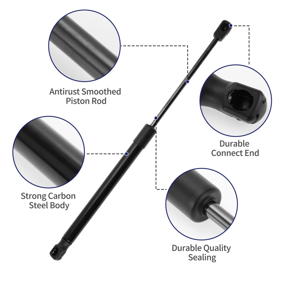 Fitment:for Audi A8 1997-2000. OE Number:4D0827551B. Specification:Extend length: 40cm/ 15.75", Compressed length:24cm/9.45"; Color: Black; Placement on vehicle: Tailgate. Product Characteristics:Gas Springs printed a waterproof material on the surface, dustproof, easy to clean. Lift Support Strut is made of durable Carbon Steel material, strong and durable to support Tailgate.. Package List:2Pcs Lift Supports Strut.