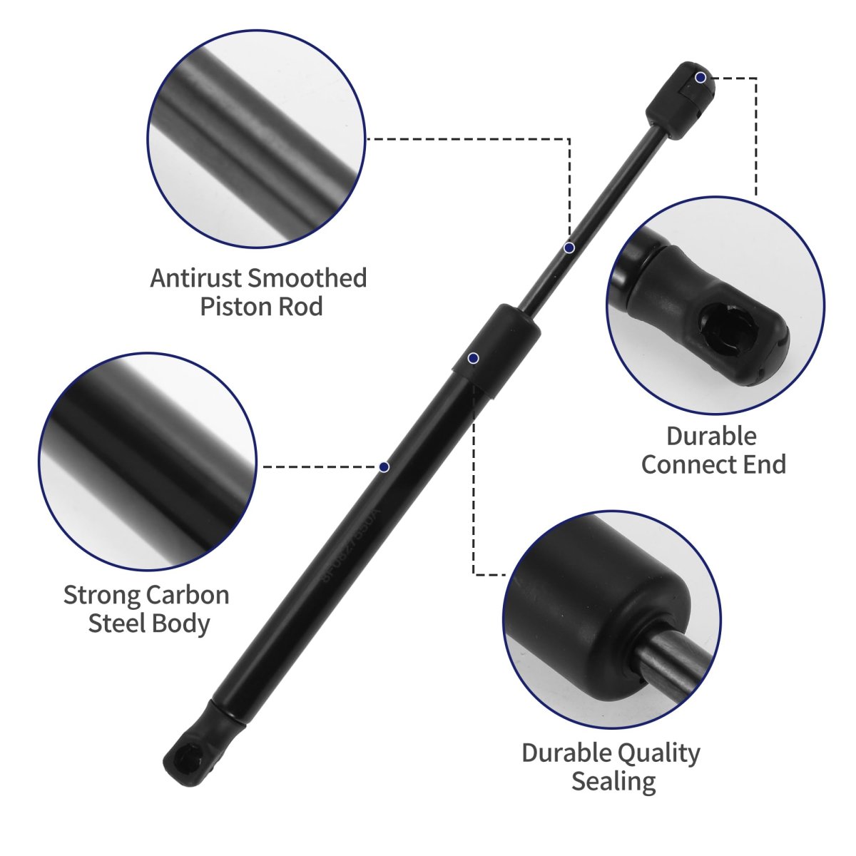 Fitment:for Audi A5 Convertible (8F) Convertible 2009. OE Number:8F0827550A. Specification:Extend length: 32cm/ 12.6", Compressed length:23cm/9.06"; Color: Black; Placement on vehicle: Tailgate. Product Characteristics:Gas Springs printed a waterproof material on the surface, dustproof, easy to clean. Lift Support Strut is made of durable Carbon Steel material, strong and durable to support Tailgate.. Package List:2Pcs Lift Supports Strut.Other fine products
