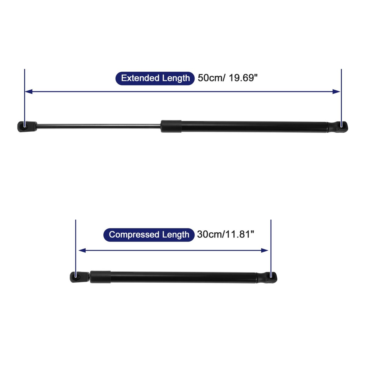 Fitment:for Audi Q3 (8U) Closed Off-Road Vehicle 2011. OE Number:8U0827552A. Specification:Extend length: 50cm/ 19.69", Compressed length:30cm/11.81"; Color: Black; Placement on vehicle: Tailgate. Product Characteristics:Gas Springs printed a waterproof material on the surface, dustproof, easy to clean. Lift Support Strut is made of durable Carbon Steel material, strong and durable to support Tailgate.. Package List:2Pcs Lift Supports Strut.