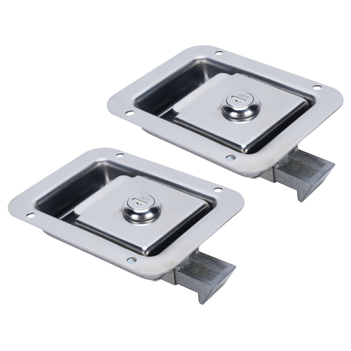 [Premium Stainless Steel Design] Built with robust 304 stainless steel and a mirror finish, for outdoor applications.. [Reliable Security] Each set includes 2 matching keys and washers ensuring a snug fit, preventing dirt and from entering.. [Versatile Fit] Dimensions of 121x91mm and a mounting hole size of 97x66mm, suitable for doors up to 24mm thick.. [Heavy Duty Construction] Designed to endure harsh environments, ideal for RV toolboxes, trucks, and various cabinets.. [Easy Installation] Flush mount design allows for straightforward replacement of old latches, featuring ergonomic paddle handling..Other fine products