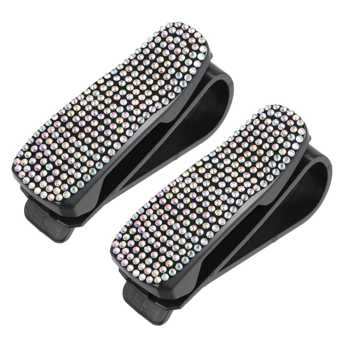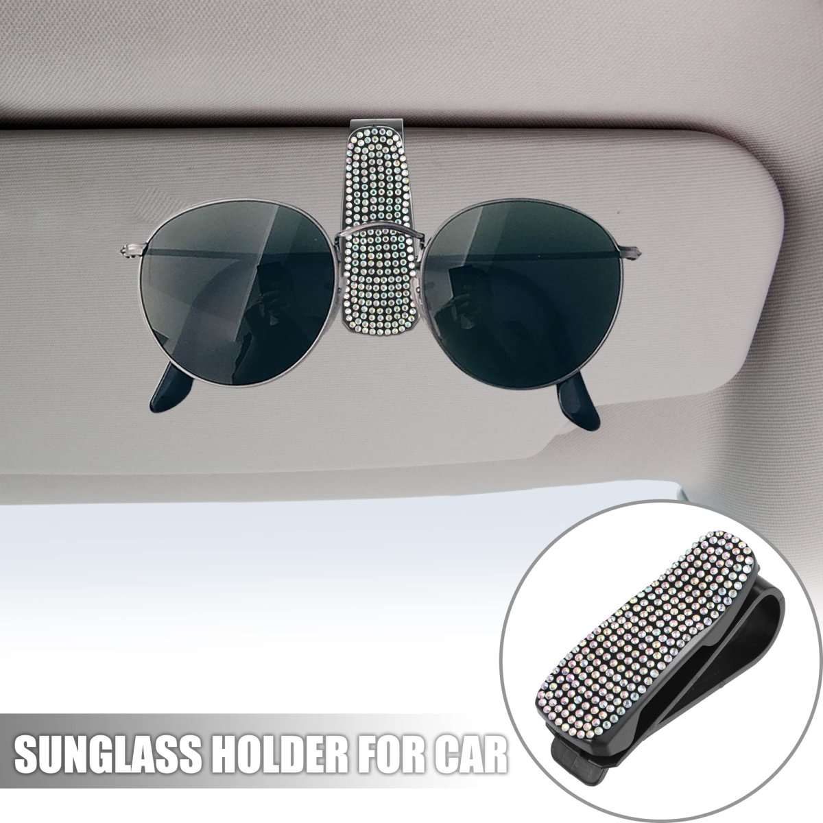 Stylish Design: This sun visor glasses holders can clip a pair of sunglasses and an extra card like tickets, gas reward cards, credit cards, cash and driver licenses, etc. Protect your glasses from falling, scratching and losing but not obstruct your view while driving.. Built to Last: Made of reliable plastic and rhinestone material for more durability. Soft sponge to protect your glasses from swaying and scratching.. Glasses Holder for Car Visor: Decorate with sparkling rhinestone. Adds more stylish and sturdy features.. Easy to Use: Just simply mount at almost all car sun visors. Provides easy access to glasses, and will not leave marks and can protect the visors.. Universal Sunglass Holder for Car: Sunglass clip for visor fits all glasses and sunglasses and for all car models such as cars, trucks, minivans, SUVs, RVs, cabs/taxis, and anywhere needed..