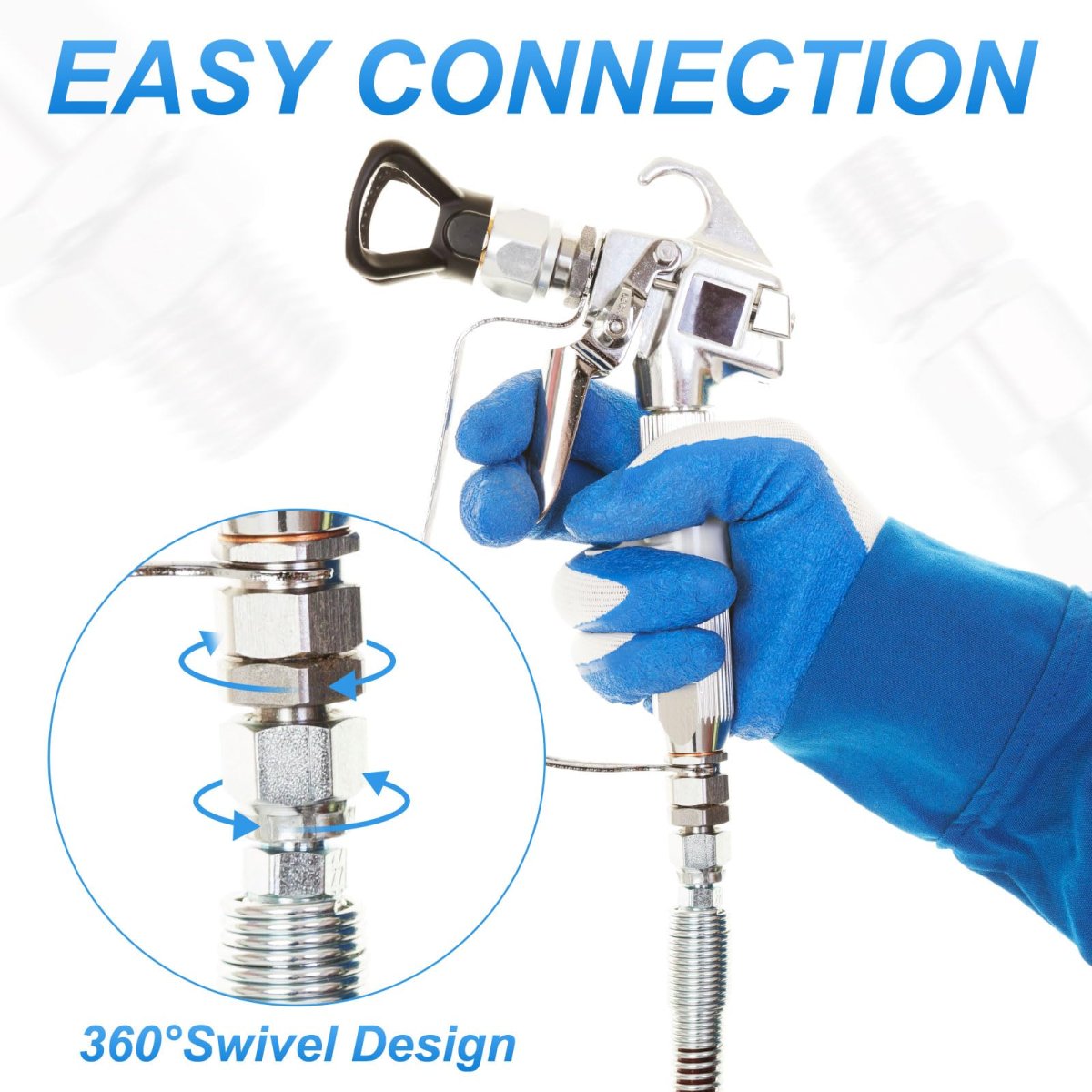- 3 8 Inch Sprayer Joint 360 Degrees Rotate Stainless Steel Swivel For Paint Spray Gun Hose Airless Sprayers 2 Pcs