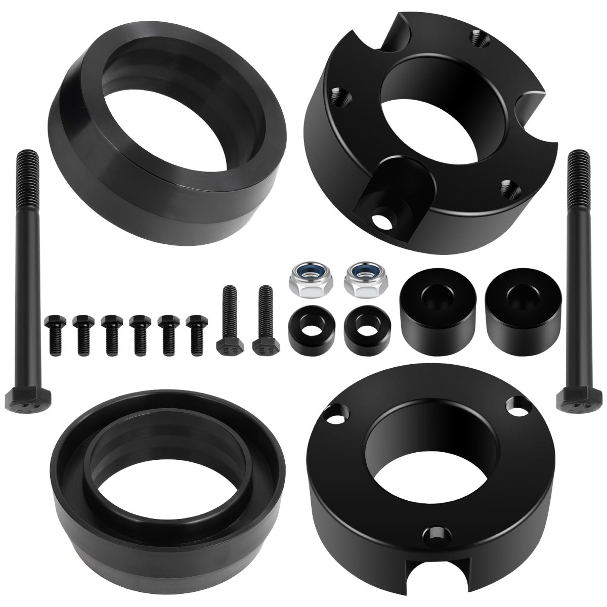 Compatibility: Leveling Lift kit fit 2003-2024 for Toyota for 4Runner,2007-2014 for Toyota for FJ Cruiser. Comfortable: Once you install it on your truck, it will give your truck a cool look. Accurate numerical control precision and good quality, ensure your driving is more comfortable. Performance: Strut lift spacers are CNC precision machined out of forged 6061-T6 aluminum alloy, the adapter is especially powder black coated for a great look that will offer good quality and last the life.10.9-12.9 grade solid bolts extremely strong and durable without compressing or warping over time. Note: the ratio between lift height and kit thickness is not 1:1 due to your original suspension size. Easy Installation: Bolt-on installation, is convenient and easy. Instead of taking away the strut coils assemblies and drilling, simply install the leveling kit on the top of the strut and fix it with bolts.