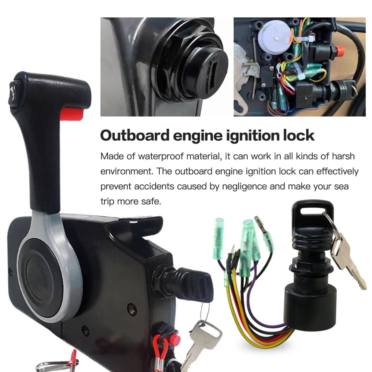 Replacing the ignition key switch: The boat key ignition switch for Mercury Mariner outboard motor control box needs to be used every time the ship is powered on.If you have to swing the key hard, it means you need to replace the key switch to achieve the performance of the love boat. Easy to install in 2 minutes, no tools required. The color on the key ignition switch wire matches the factory color code.. Material: Sealant process, waterproof, dustproof and insulating. This 3 position 6 wire connectors key starter switch with 2 keys is made of performance polyester and brass, with safety, durability and excellent conductivity. Very reliable and reliable.Other fine products