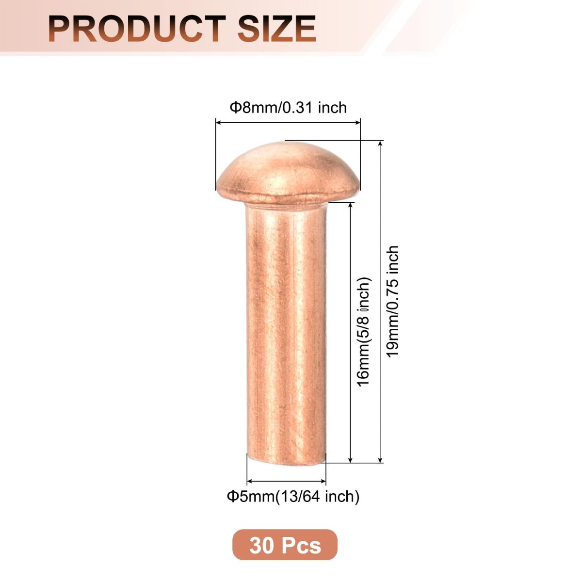 - 30 Pcs 13 64 X 5 8 Round Head Copper Solid Rivets Fasteners