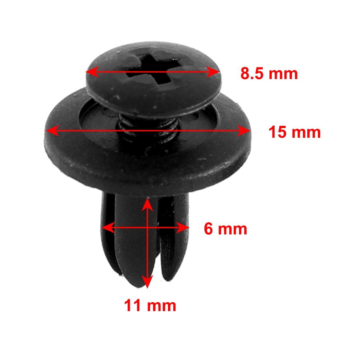 PERFECT REPLACEMENT FOR OEM- the retainer clips are made of plastic, have a good fit and are of equal quality to the originals. THE SAME SIZE & SHAPE AS ORIGINAL - Head dia: 15mm/ 0.6 inches; stem length: 13mm/ 0.5 inches & fits:6mm/0.23 inches hole. UNIVERSAL FIT- These universal push-type plastic clips will fit on most of auto parts with 6mm hole, hold your parts very tightly. WIDELY USE-Brand:Apply for car bumper, door panels etc.. PACKAGE INCLUDE:30(+/-2%) PCS plastic push-type bumper retainer clips.