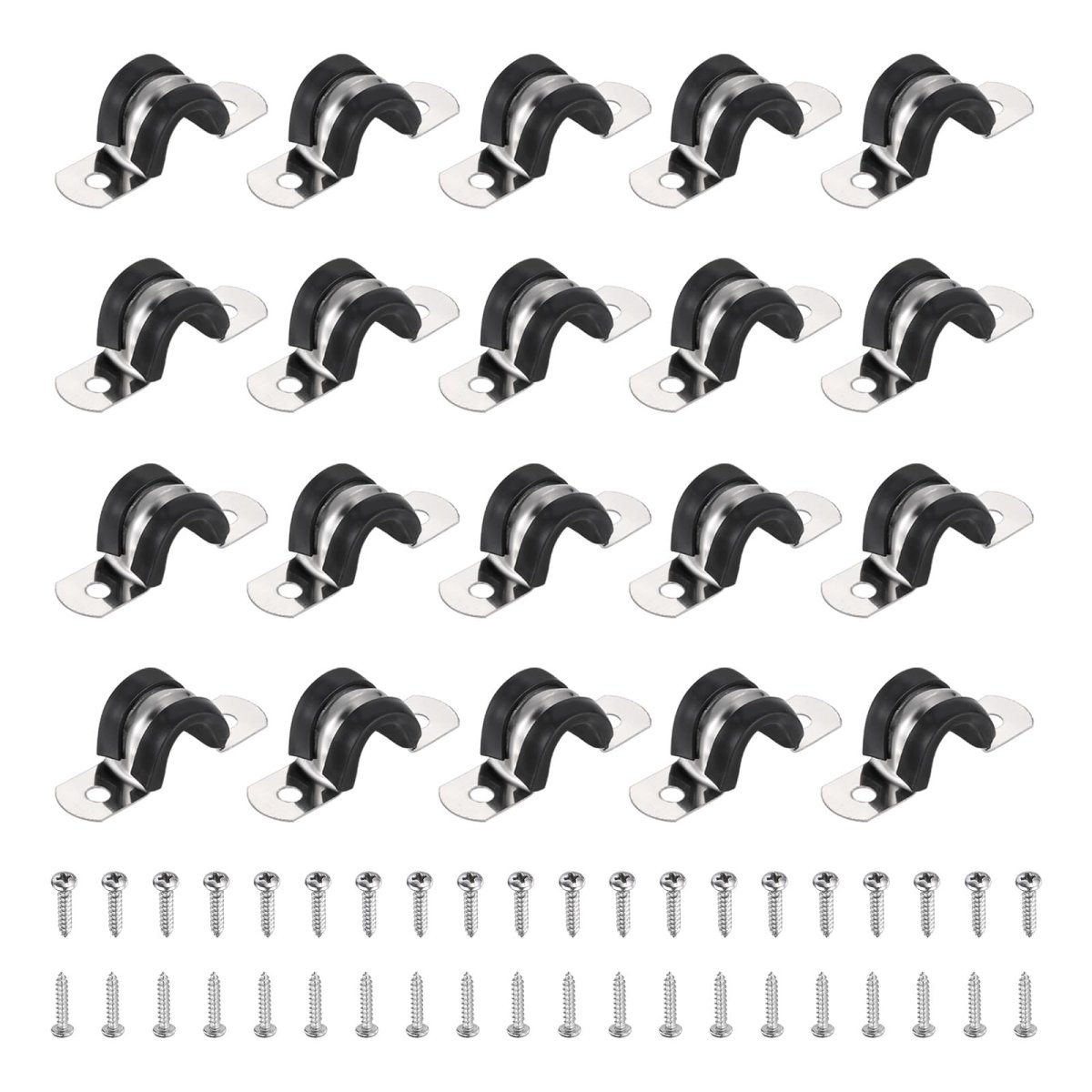 Material: 304 Stainless Steel, EPDM Rubber; Stainless Steel Clamp Width: 12mm/0.47"; Fit Pipe Dia. (OD): 12mm/0.47"; Thickness: 0.6mm/0.24"; Hole Dia.: 4mm/0.16"; Hole Spacing: 31mm/1.31"; Screws Size(DiaxL): M3x12mm; Package Contents: 30 Pcs x Cable Clamps, 60 Pcs x Screws. Durable Material: The cable clamp is crafted from 304 stainless steel and EPDM rubber cushioned pads for durability, it is oil-proof, waterproof, anti-oxidation, rust and corrosion-resistant, and the elastic rubber material provides effective buffering and insulation properties.. U-Tube Design: The U-Tube opening design facilitates easy attachment of pipe clamps to surfaces. The U-style curvature and rubber pad offer stable support for securing the pipe, safeguarding cables and pipes, minimizing wear, and extending the service life of the pipes.. Application: These cable clamps have a wide range of applications and are used in automotive, industrial, marine, home, construction, and other area. Commonly used for line management and maintenance. Suitable for stainless steel pipes, rubber hoses, plastic steel pipes, gas pipes, indoor and outdoor fixing of wires and cables..Other fine products