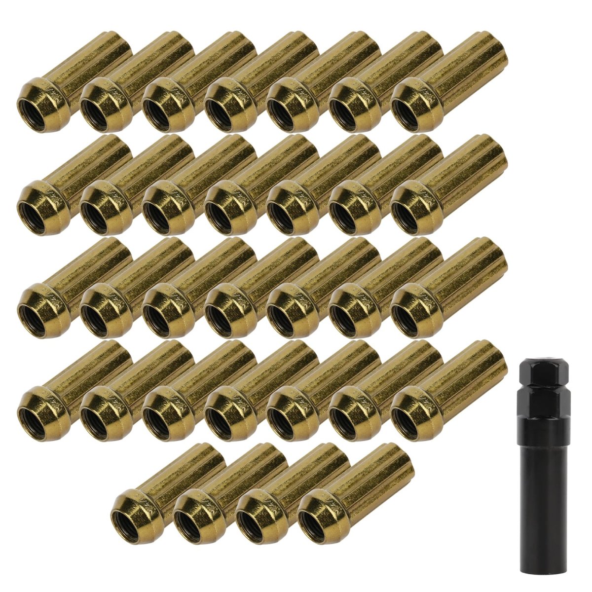 - 32pcs 1keys Gold Wheel Lug Nuts Spline Closed End Socket Thread 14x1 5 Nut For Chevrolet Gmc Hummer