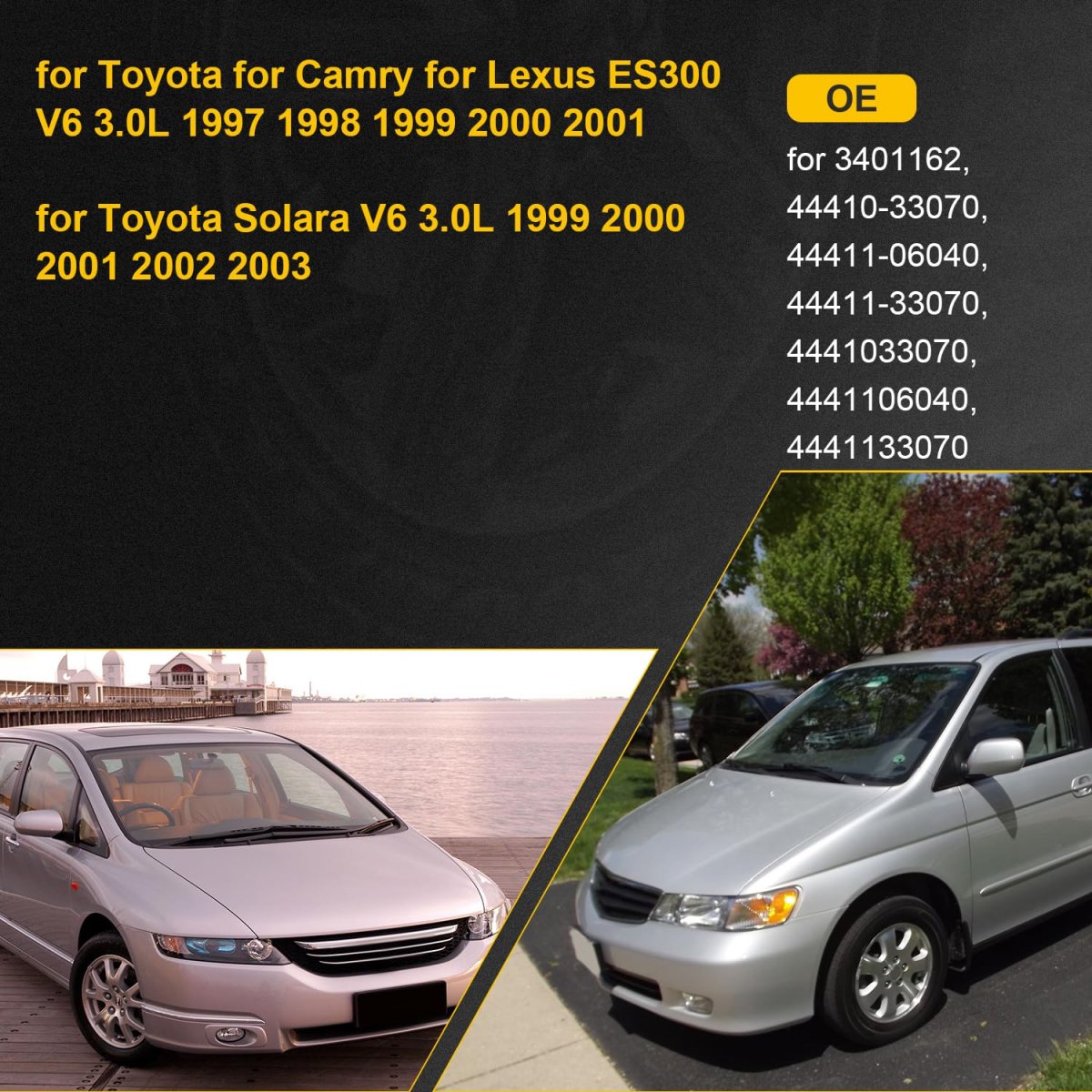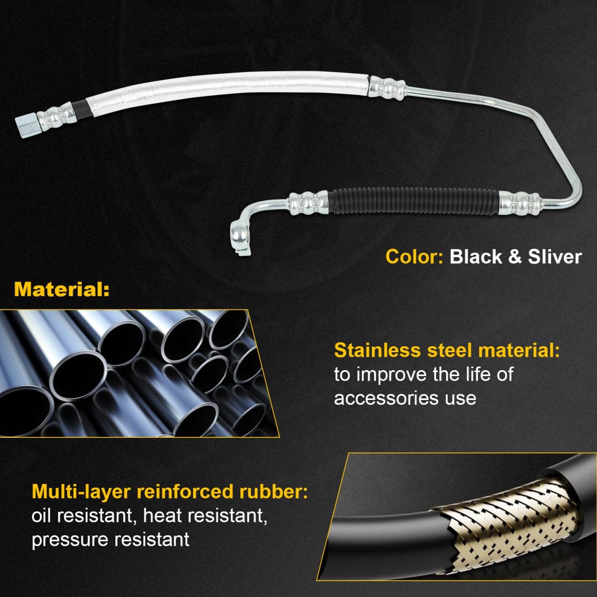 COMPATIBLE MODELS: Power Steering Pressure Hose compatible with Toyota for Camry for Lexus ES300 V6 3.0L 1997 1998 1999 2000 2001 for Toyota Solara V6 3.0L 1999 2000 2001 2002 2003. REPLACE NUMBERS: for 3401162, 44410-33070, 44411-06040, 44411-33070, 4441033070, 4441106040, 4441133070. SPECIFICATIONS: Power Steering Pressure Hose (high pressure hose) is made of sturdy rubber and alloy, which shows good strength, toughness and is not easy to wear and break. Pressure Hoses with a Max working pressure of 1, 500 psi a burst pressure rating of 8, 700 psi and a tensile strength of 1, 600 lb. This provides exceptional durability and long life. WHY REPLACE: When the steering system shows signs of leakage or inconsistent power assist which means the power steering line for points of failure. Often times leaks will be found in the junctions between components or at the crimped connections between flexible and ridged sections,Replace the old and worn power steering pressure hose. Get rid of the power steering noise and oil leakage, insure the good performance of your vehicle.Other fine products