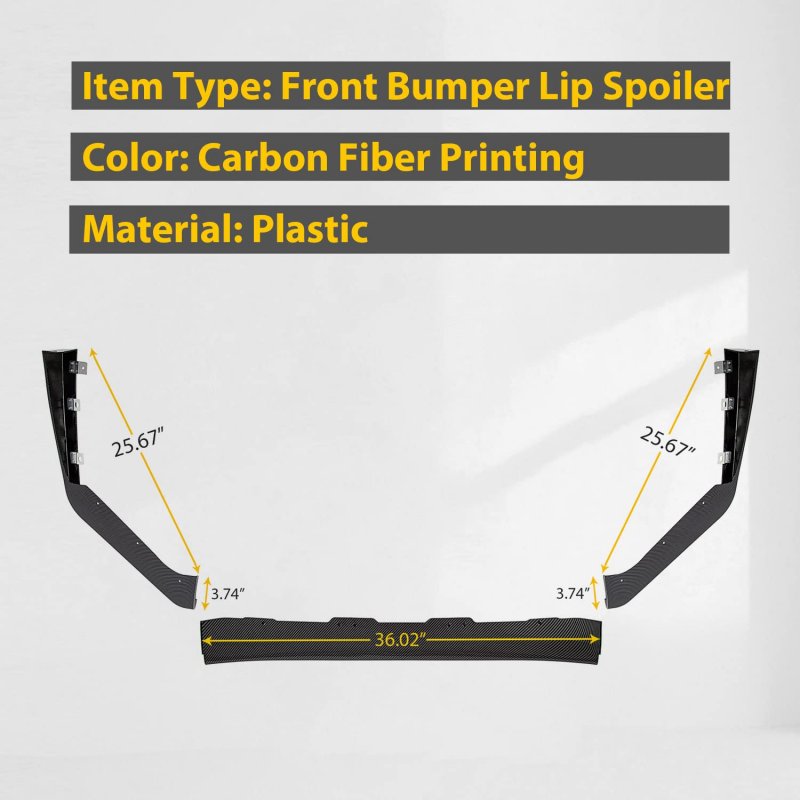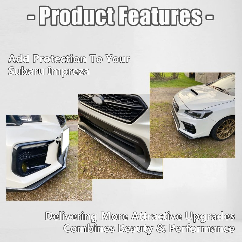 Improve the visual effects and create a new iconic racing appearance. You can find your car at a glance from similar models. The low-profile wraparound design provides a stylish aerodynamic appearance, minimizes wind resistance and improves fuel economy.. Fitments - Compatible with 2015 2016 2017 2018 2019 2020 2021 Subaru Impreza WRX and STI (all models/interior). Replace directly.. Features - . Colour: Black. auto grade injection molded plastic. Our products are sturdy and durable, which can effectively protect your car and reduce damage in the event of a collision. It can effectively prevent destructive marks such as scratches and bumps, and protect your previous front bumper lip.. Package Included - 1x Carbon Fiber Style front bumper lip spoiler. (Including installation hardware-as shown in the picture).. Easy Installation - Direct bolt-on installation, easy snap-in installation..Other fine products