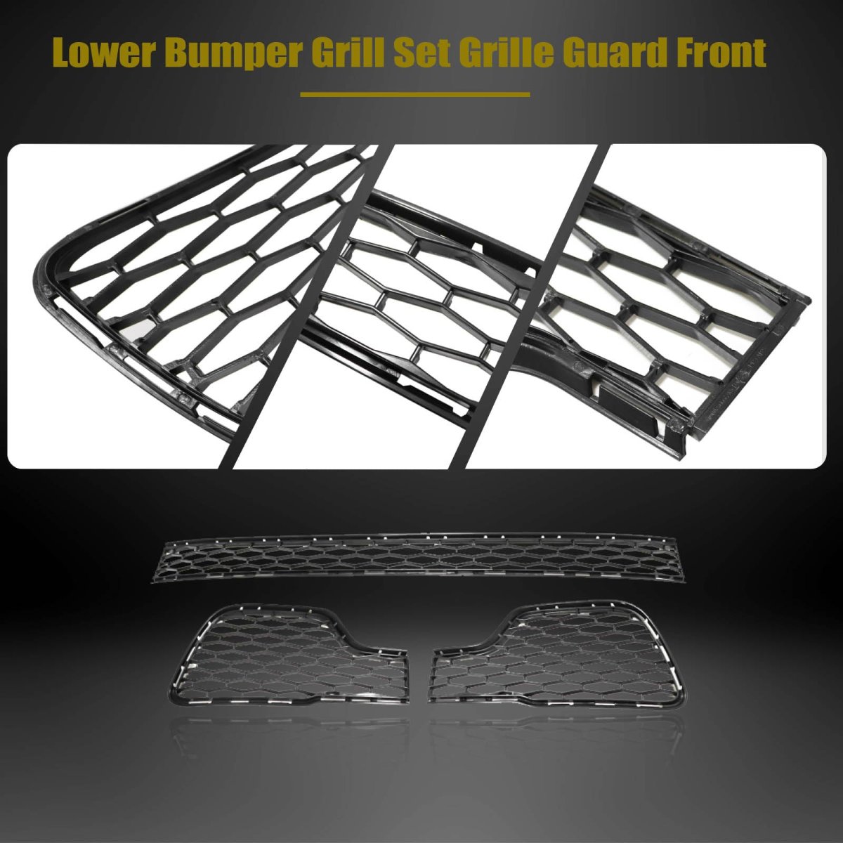 • 3pcs Lower Bumper Grill Set Grille Guard Front For Maserati Ghibli 2014 2015 2016 2017 Replace 670010773 670019836 670010766