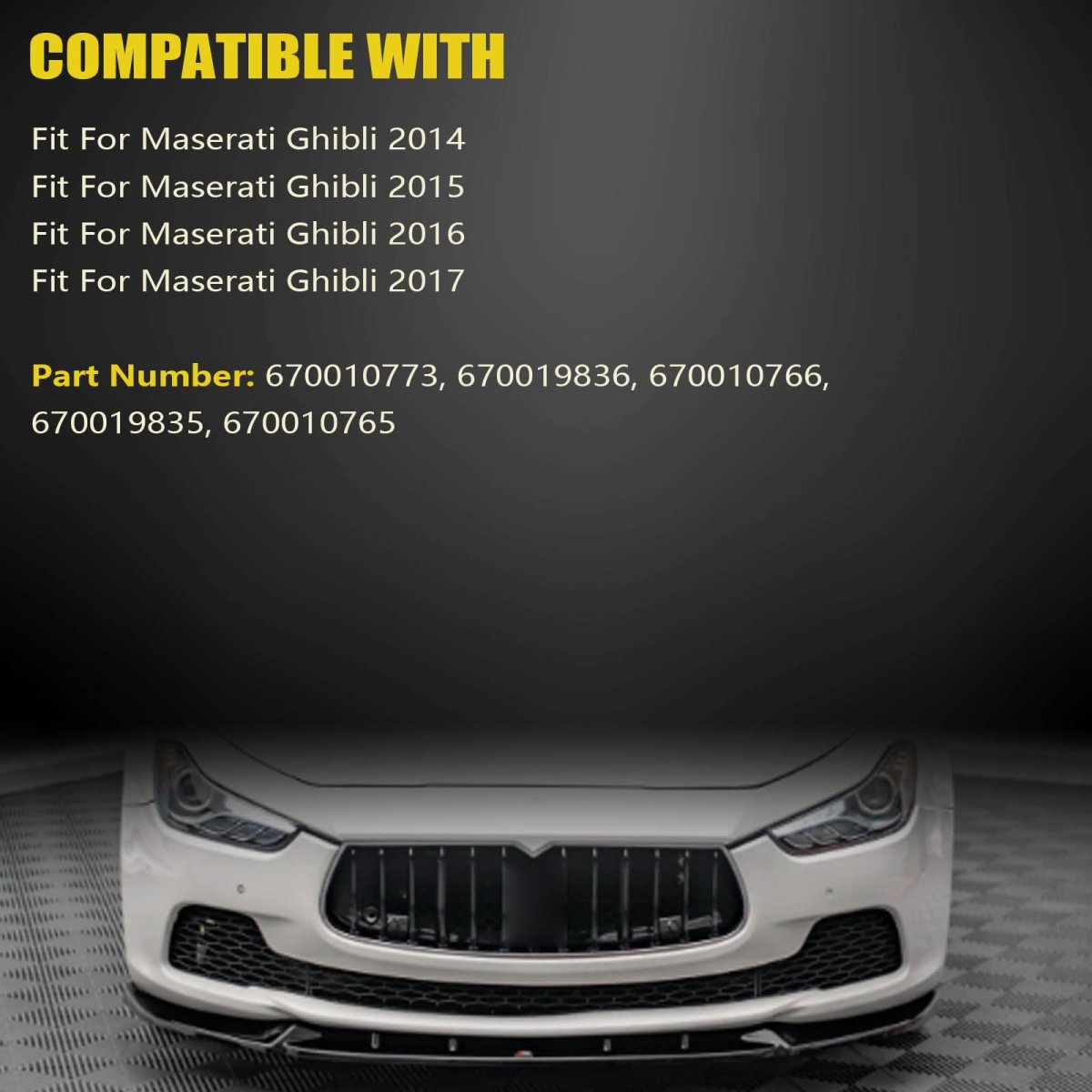FitmentCompatible with Maserati Ghibli 2014 2015 2016 2017.. Package Include3PCS Front Bumper Grill..